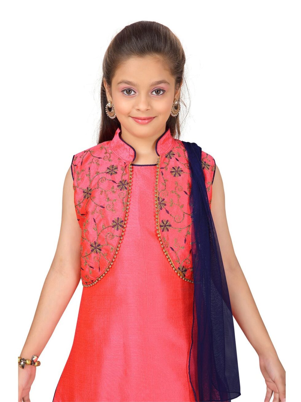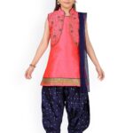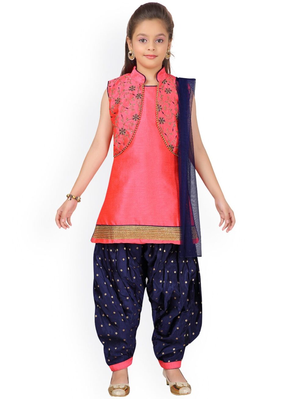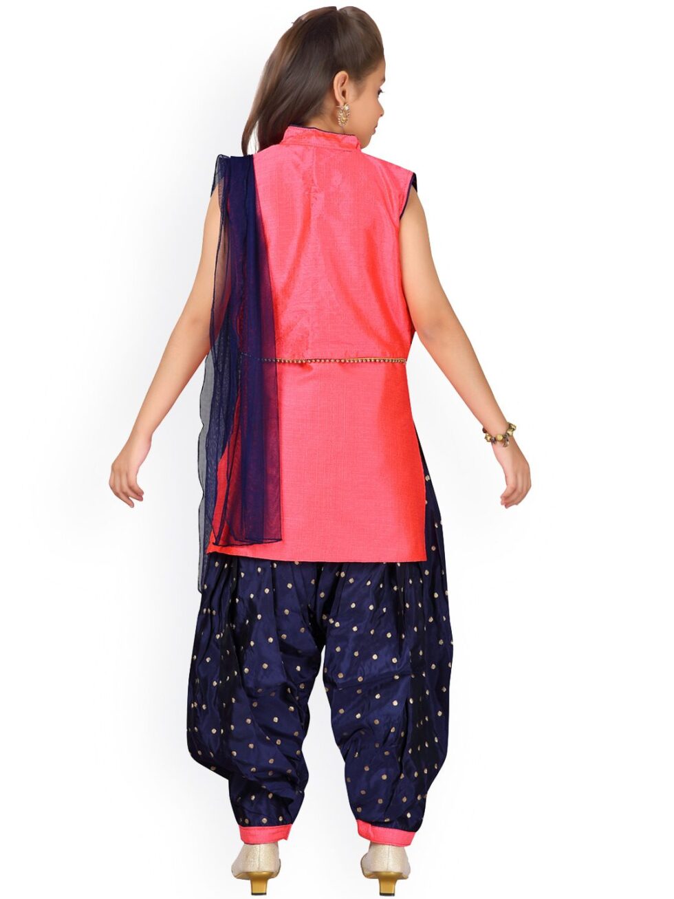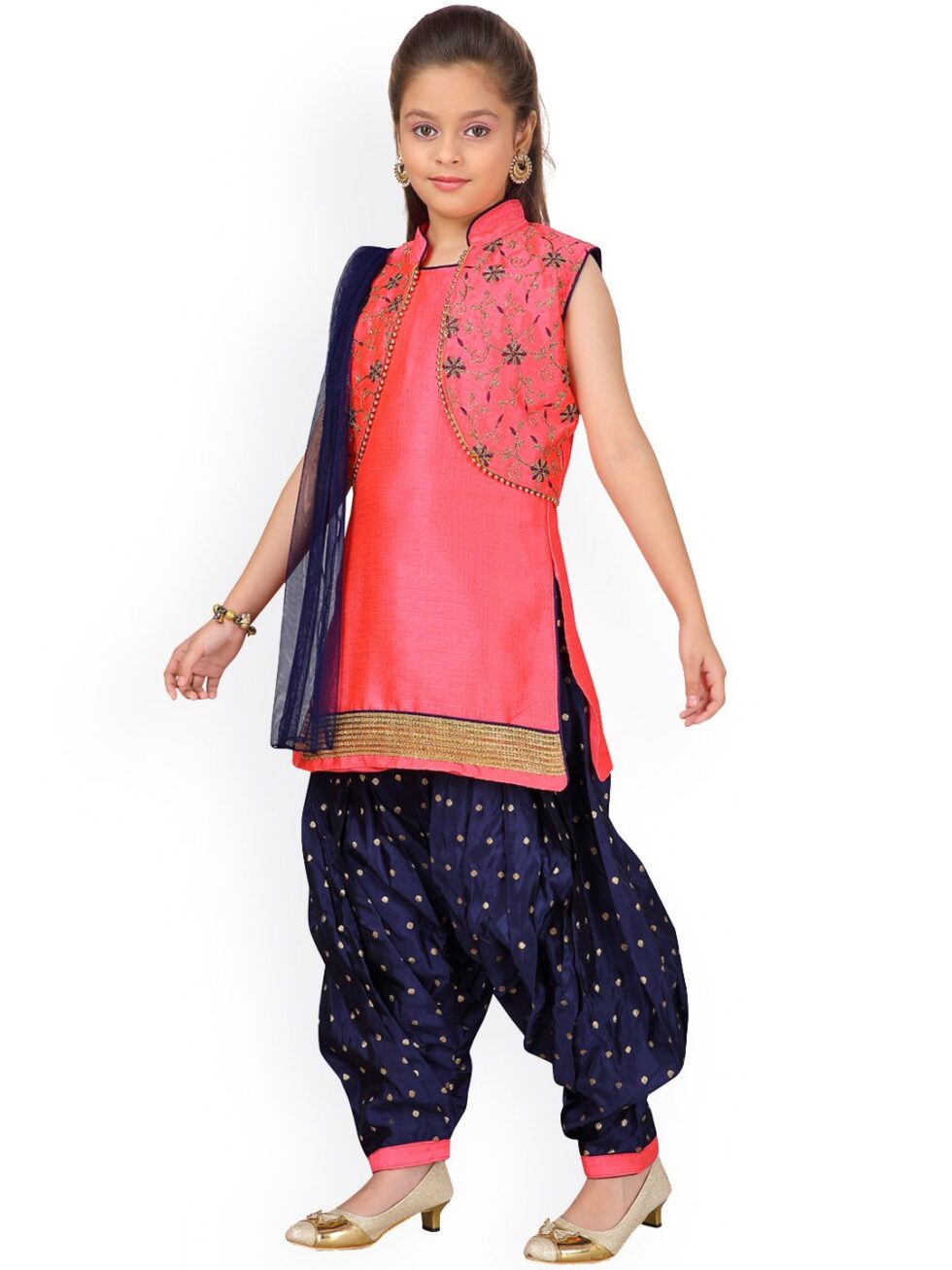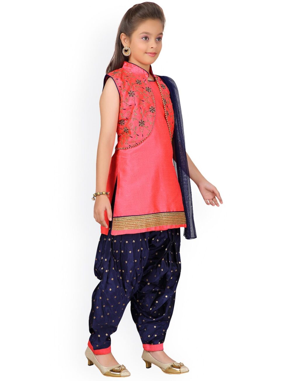 Aarika Girls Red & Navy Blue Embroidered Kurta with Patiala & Dupatta