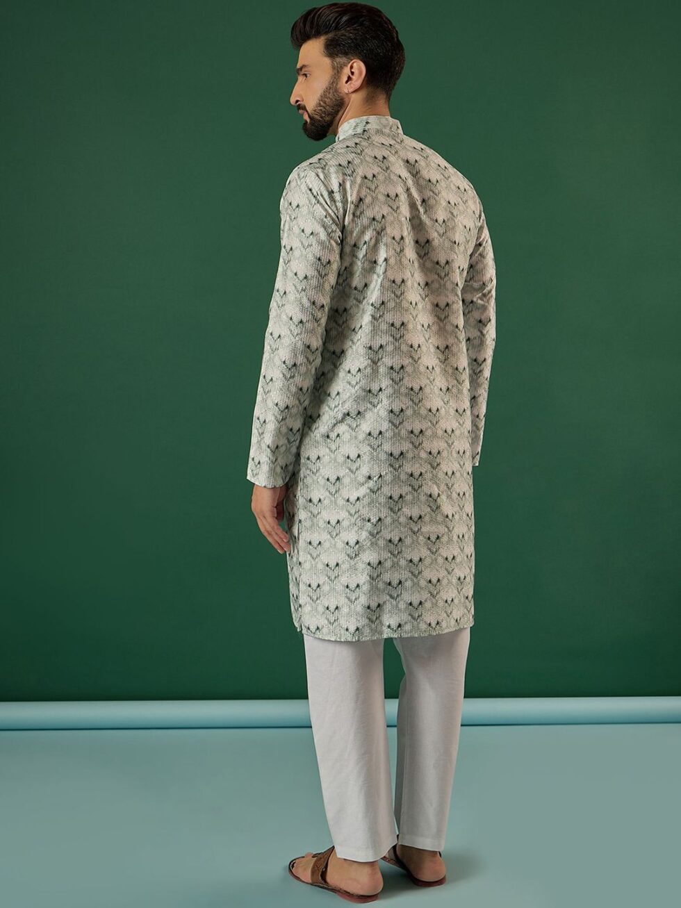 Anouk Grey Abstract Printed & Embroidered Sequinned Mandarin Collar Straight Kurta