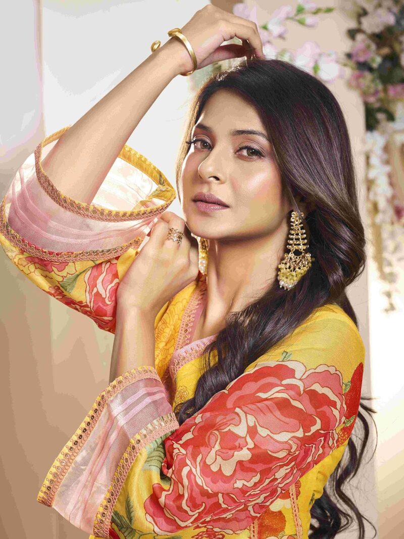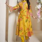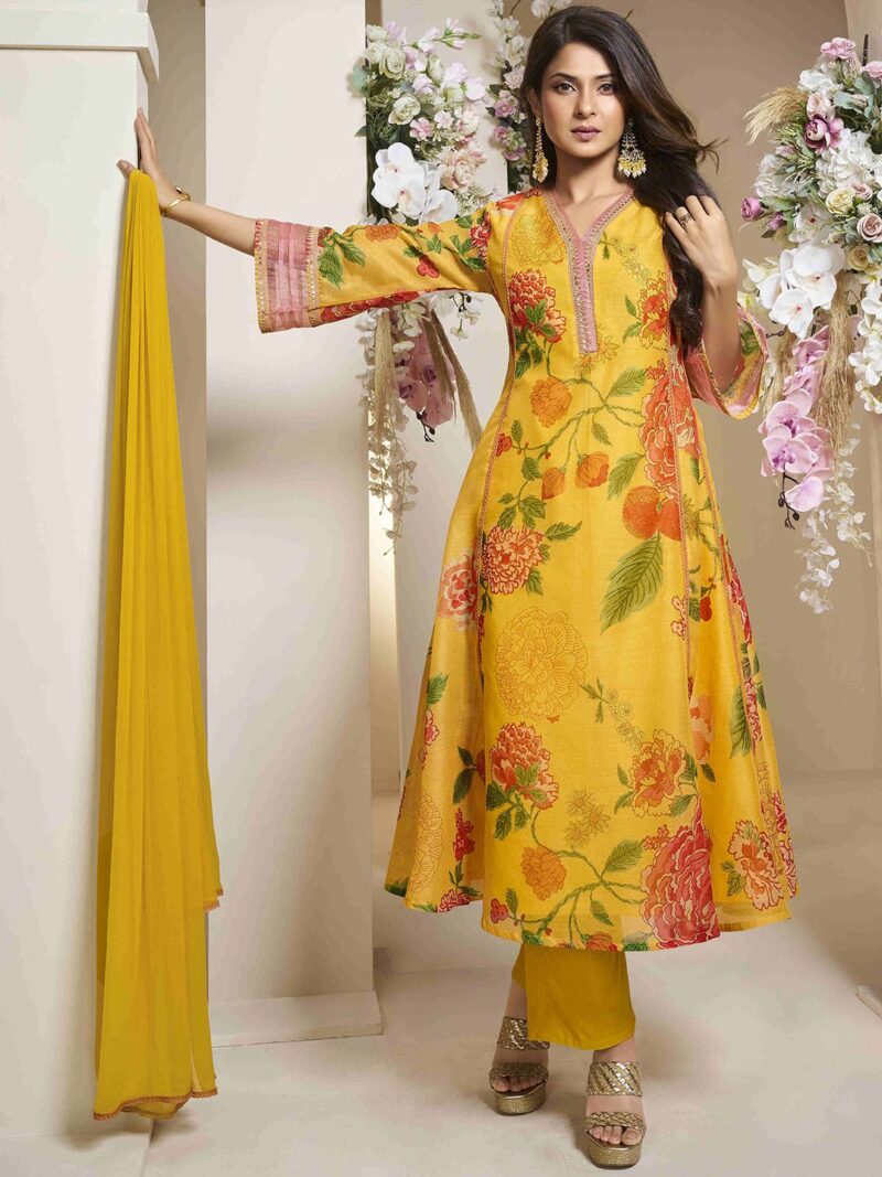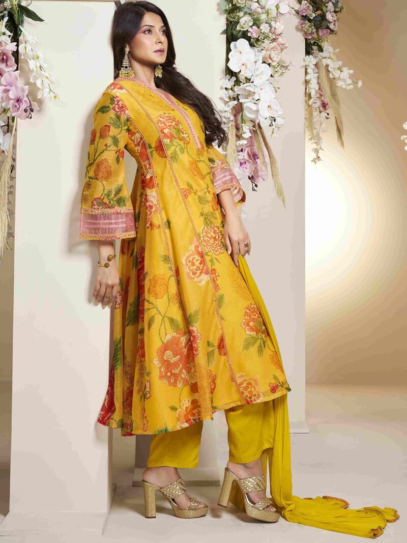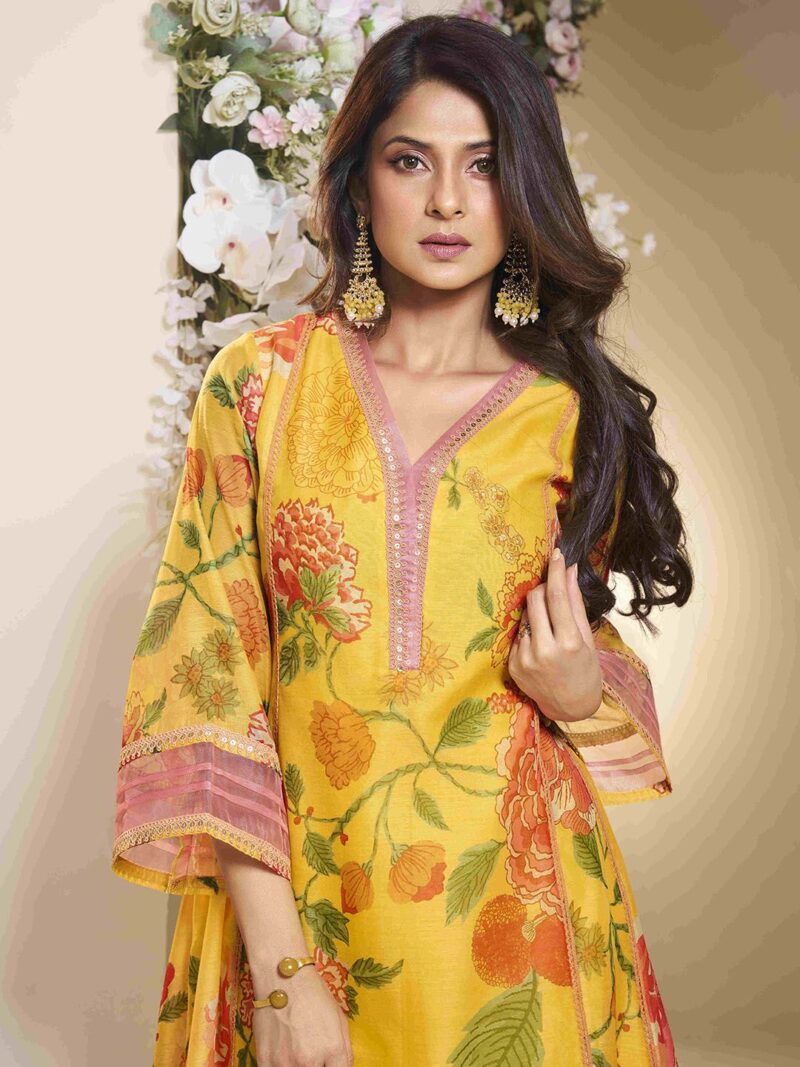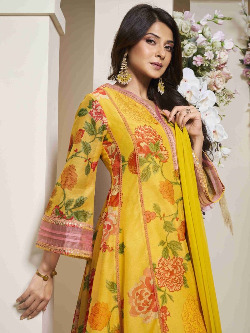 Yellow & pink printed Kurta with Palazzos & dupatta