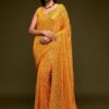 The blouse worn by the model might be for modelling purpose only. Check the image of the blouse piece to understand how the actual blouse piece looks like.