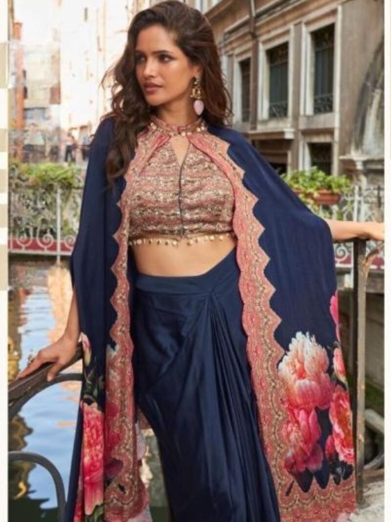 PREMIUM REAL FRENCH CREPE SILK ( STYLIST WEDDING LOOK DIGITAL HANDWORK JACKET WITH HAND WORK BLOUSE AND STYLIST DHOTI )