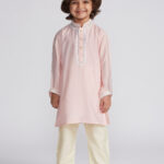 Absolutely Desi present embroidered kurta, has full sleeve, knee length and shirt collar,button closure, straight hem and side slit, comes with comfortable pyjama set. Material & Care Top fabric: Viscose Bottom fabric: Viscose Dry-clean Sleeve Length – Full Sleeve Top Shape – Straight Top Hemline – Straight Top Length Knee Length Neck -Mandarin Collar Print or Pattern Type -Embroidered Complete The Look Dress your little gentleman in our beautiful Cotton self-design kurta . It has full sleeves and flat collar, side slits and pockets. Comes with comfortable pyjamas. Perfect for any festive occasion.