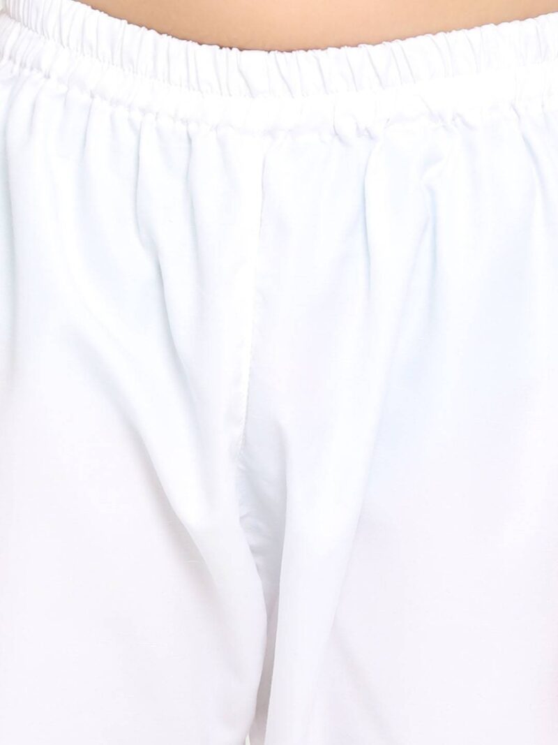 White color cotton kurta, straight, knee length kurta, has a mandarin collar, button placket, long sleeves, straight hem, and side slits. Comes with white pyjama has an elasticated waistband. Material & Care Top fabric: Cotton Blend Bottom fabric: Cotton Blend Dry-clean Sleeve Length – Long Sleeves Top Shape – Straight Top Hemline – Straight Top Length – Knee Length Neck Mandarin collar Print or Pattern Type – Solid Bottom Pattern – Solid Bottom Closure – Slip-On Waistband Elasticated Complete The Look Sport this classic kurta set from Absolutely Desi this season. Dress this piece up with your favorite accessories and head out to any family event in style.
