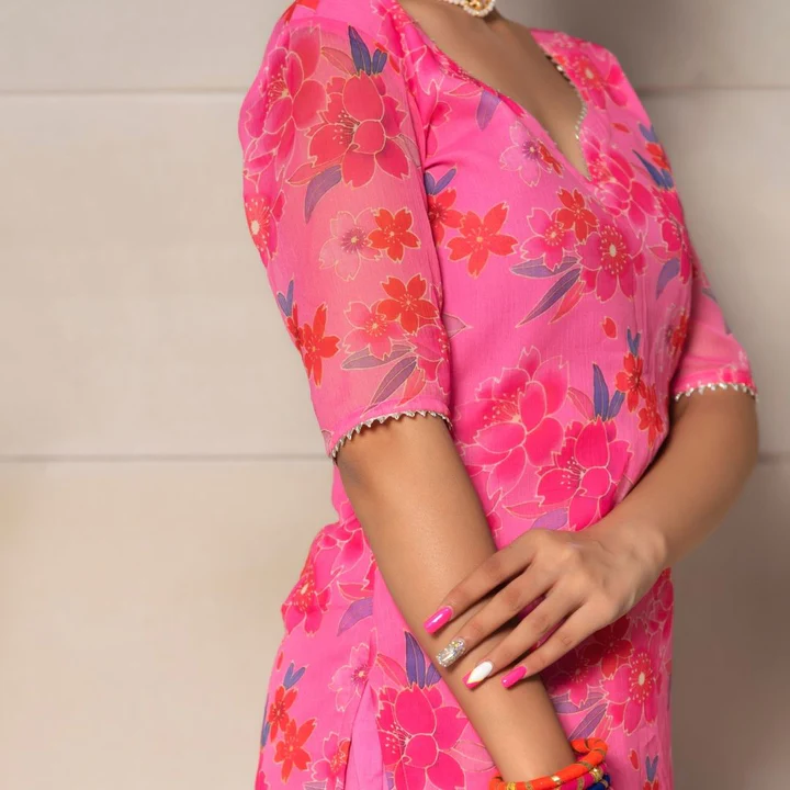Prepare to get overwhelmed with a swirl of compliments by dressing yourself in this beautiful Printed chiffon kurta suit set. With chiffon floral print dupatta and straight silhouette, Pair it with beautiful statement earrings and traditional juttis.