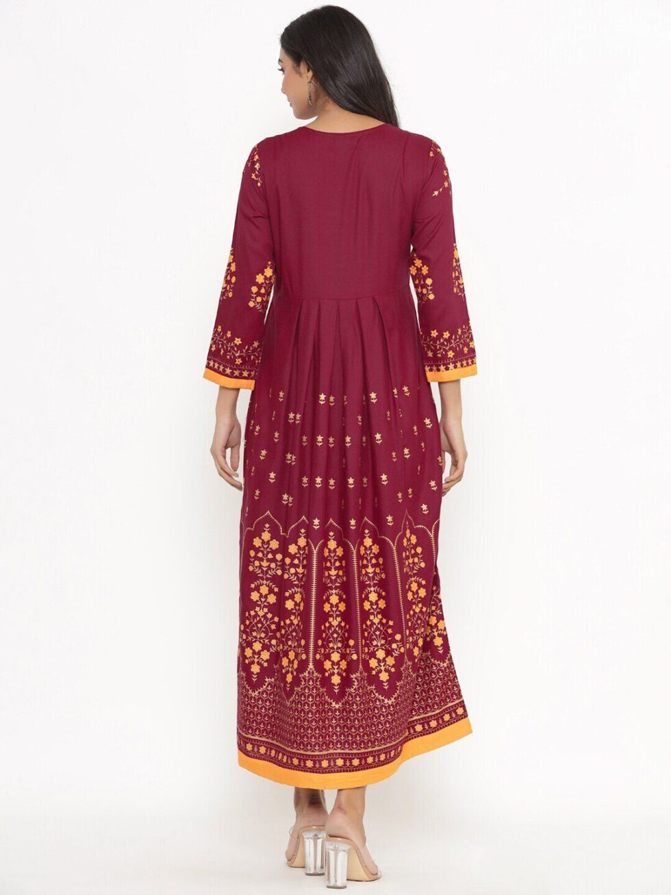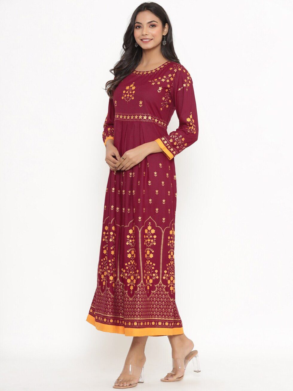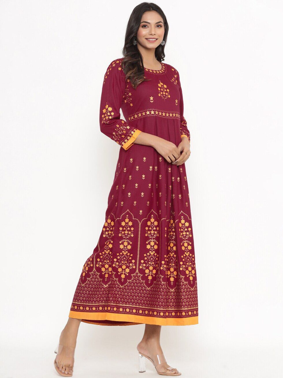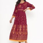 DIVYANK Women Burgundy Ethnic Motifs Printed Anarkali Kurta