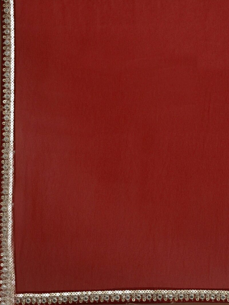 Maroon and gold-toned embroidered Unstitchedblouse, has a boat neck, long sleeves,