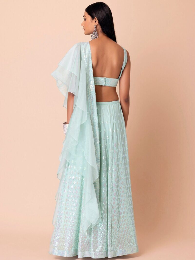 Turquoise Blue embroidered lehenga choli with dupatta, sequinned
