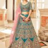 Green and gold-toned embroidered lehenga choli with dupatta, zari