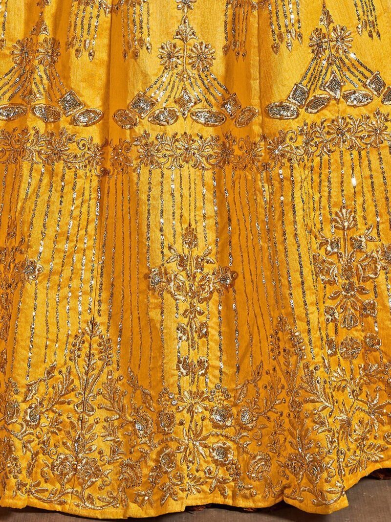 Yellow and gold-toned embroidered lehenga choli with dupatta,