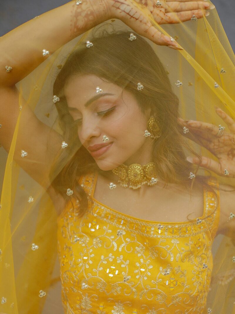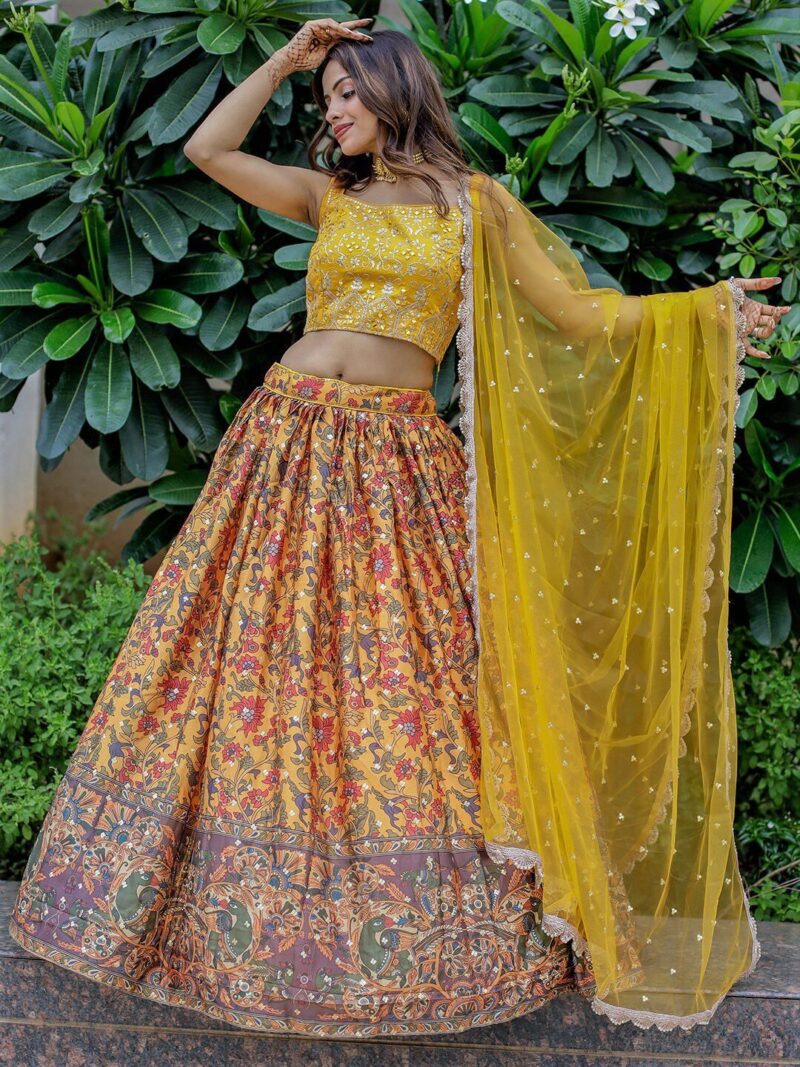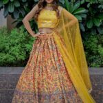 Yellow and green embellished lehenga choli with dupatta,