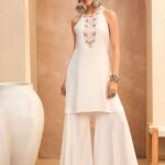 White , pink & gold-toned embroidered Kurti with Palazzo