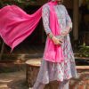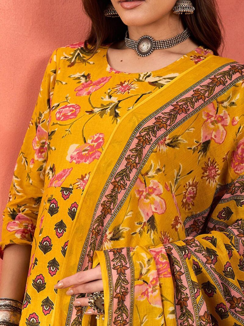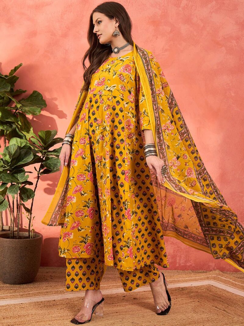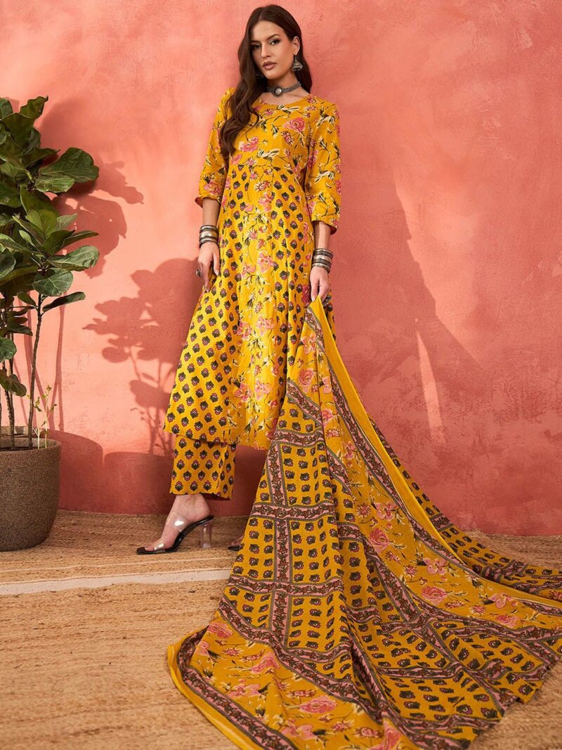 Yellow, pink and green printed kurta with palazzos and dupatta