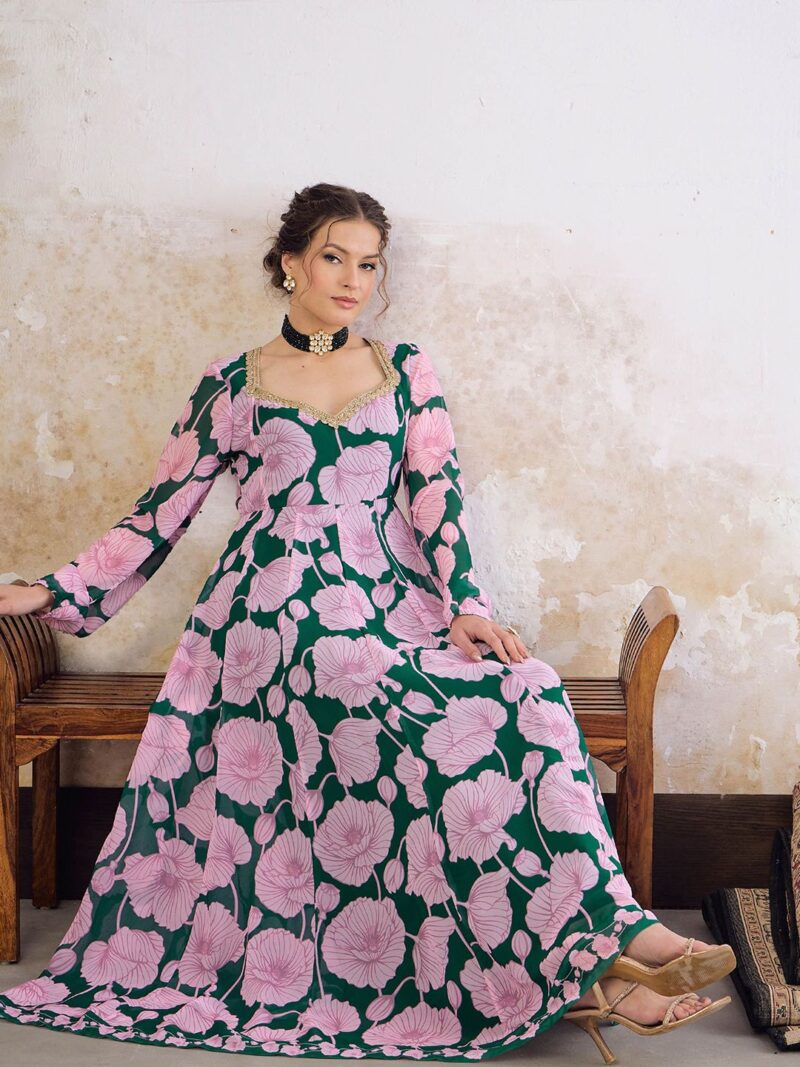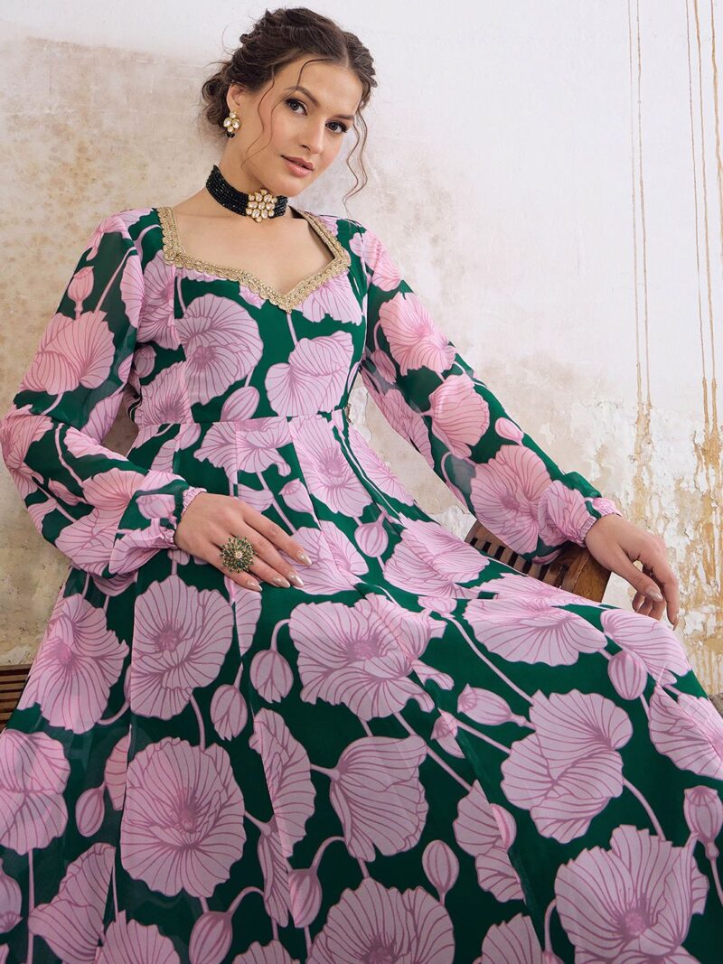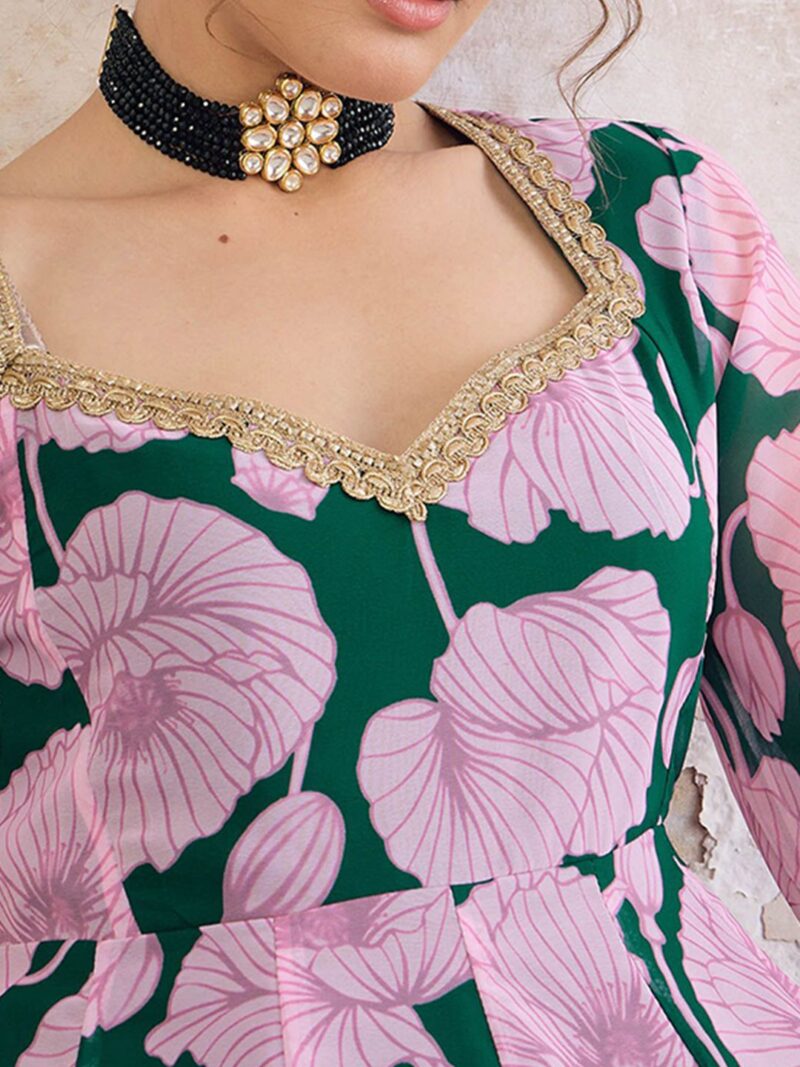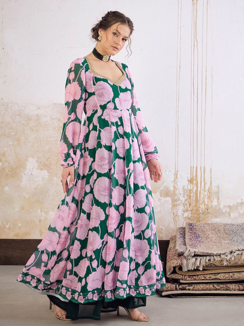 Floral Printed Sweetheart Neck Empire Georgette Anarkali Kurta