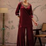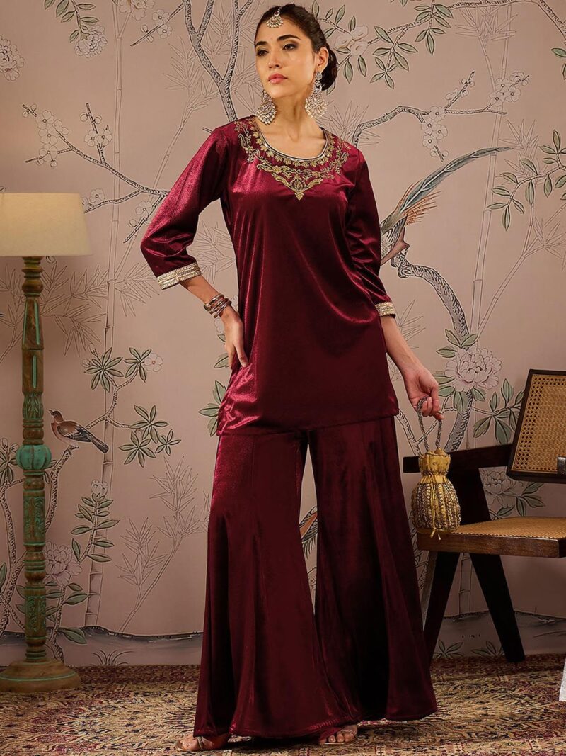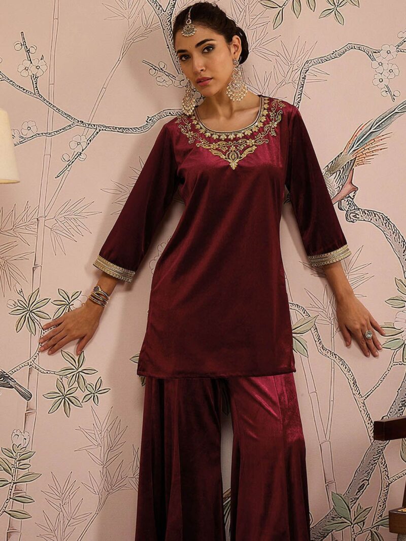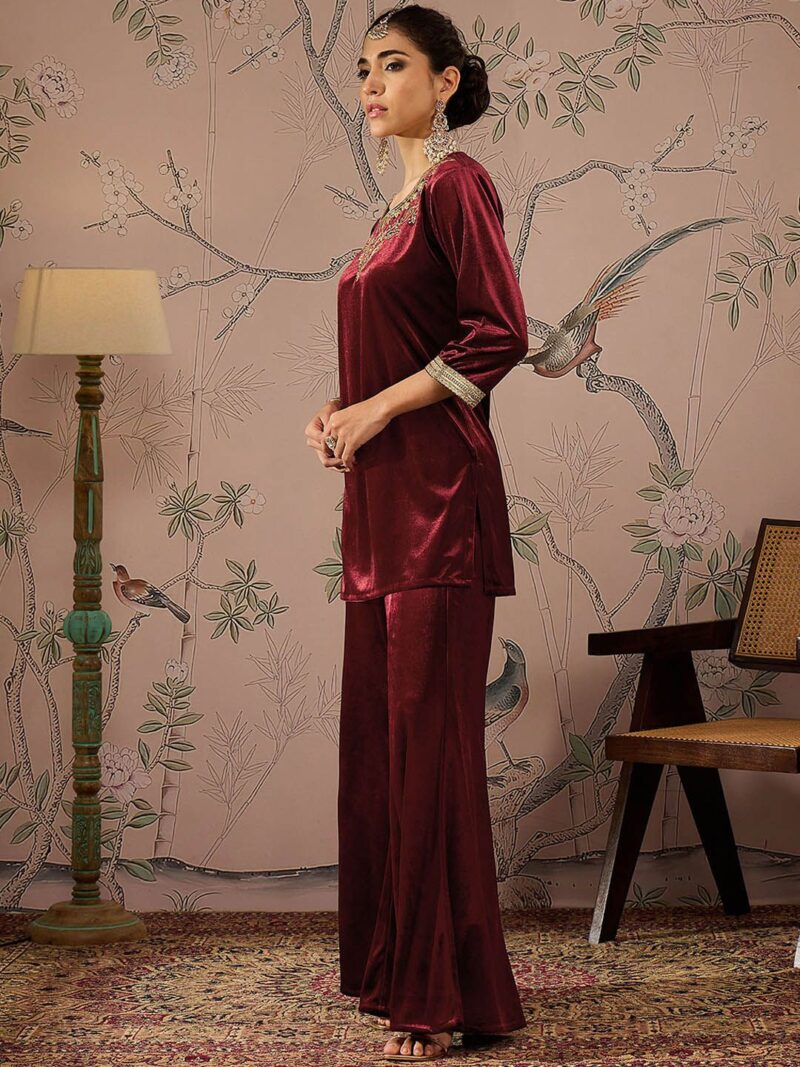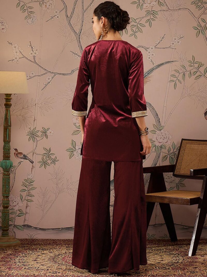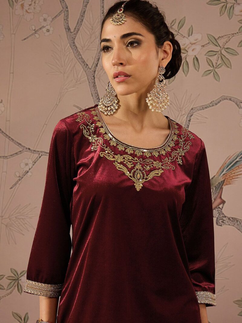 Maroon & Gold-toned yoke design Kurti with Trouser