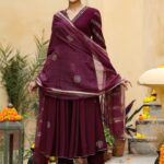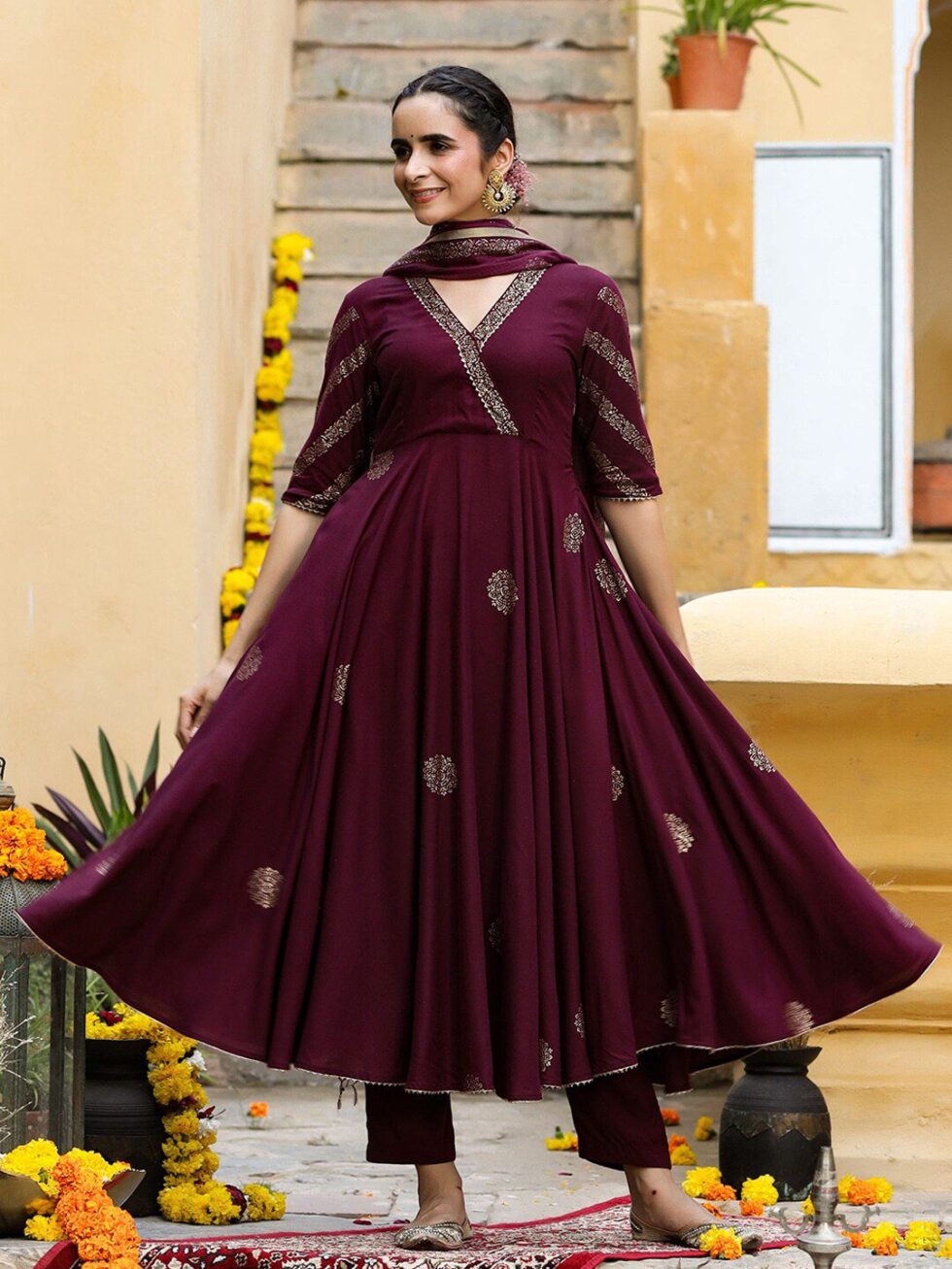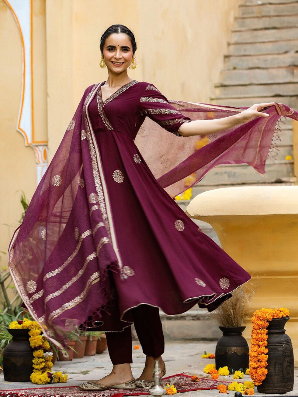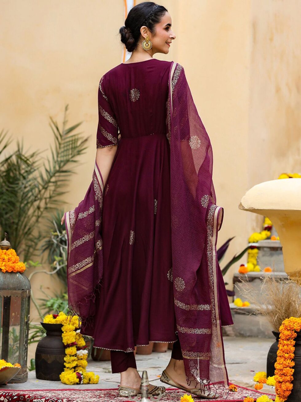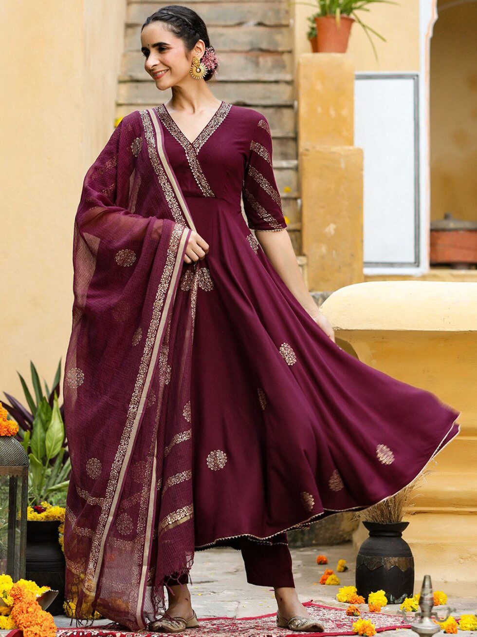 GILLORI Ethnic Motifs Printed Gotta Patti Angrakha Anarkali Kurta with Trousers & Dupatta