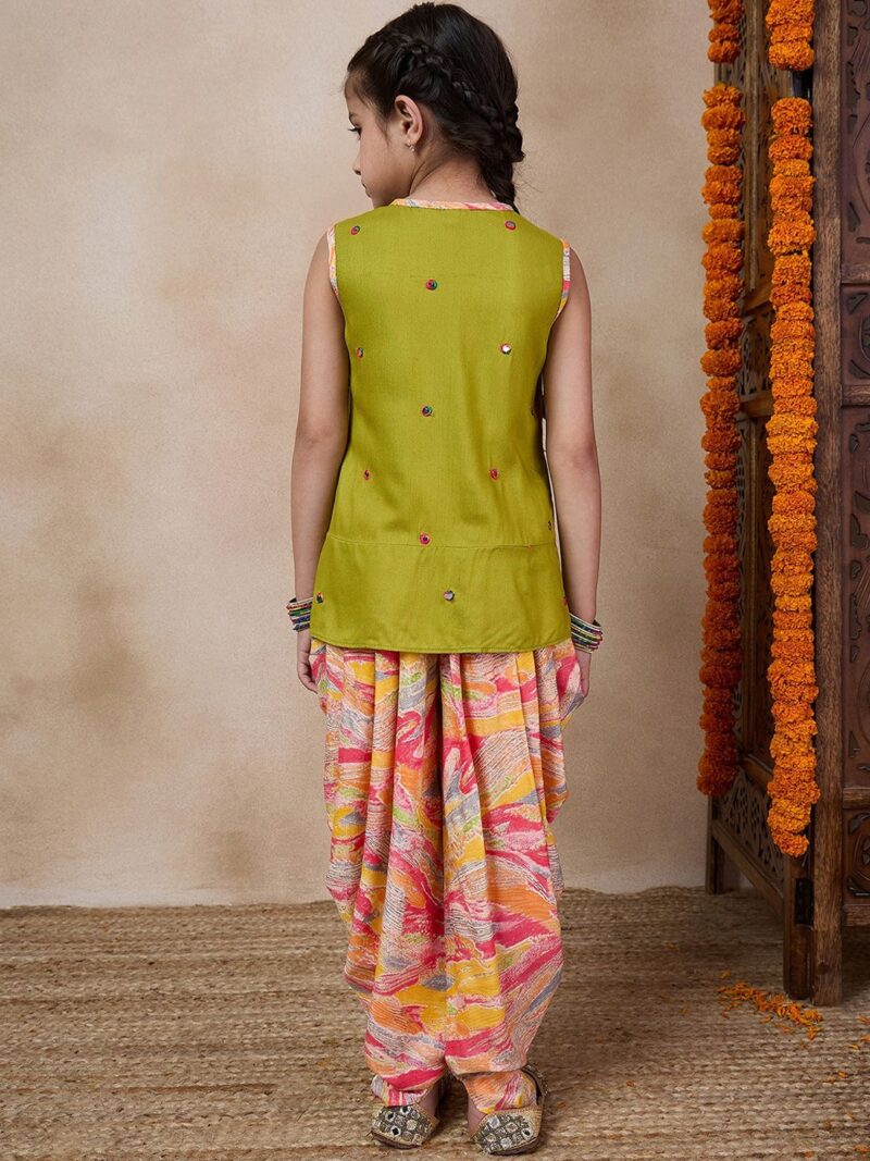 Green & red embroidered Kurti with Dhoti Pants