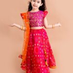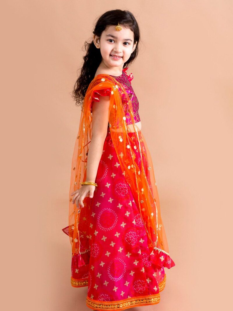 Pink and orange woven design lehenga choli with dupatta,