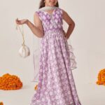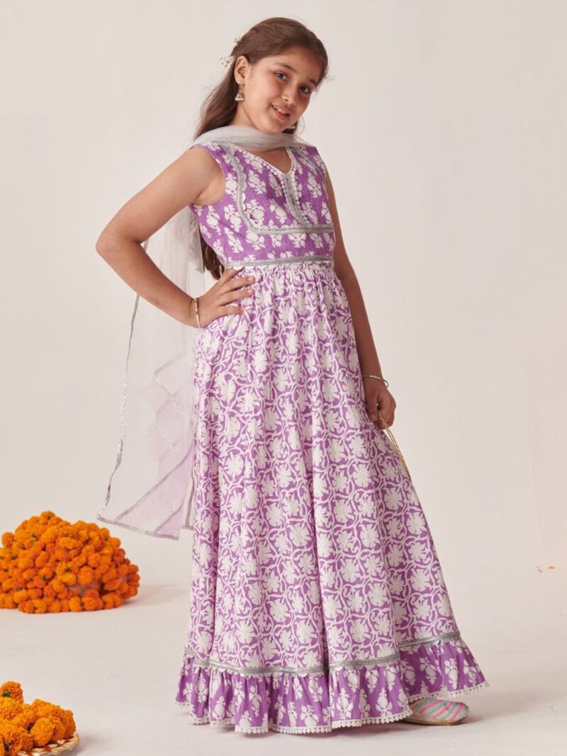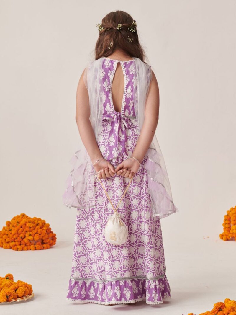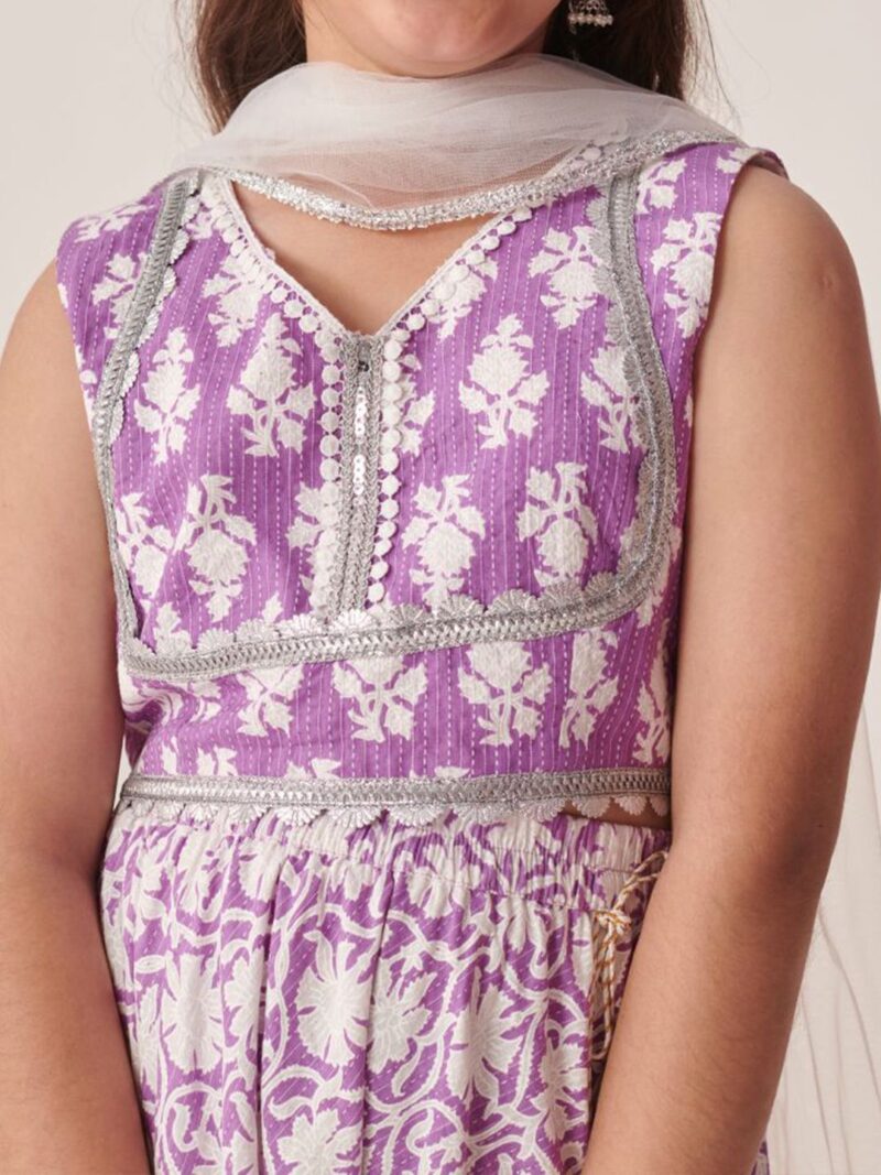 Lavender and white printed lehenga choli with dupatta, gotta patti