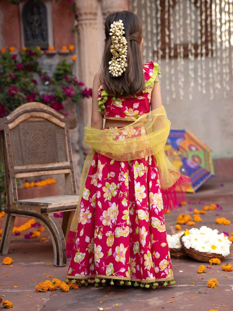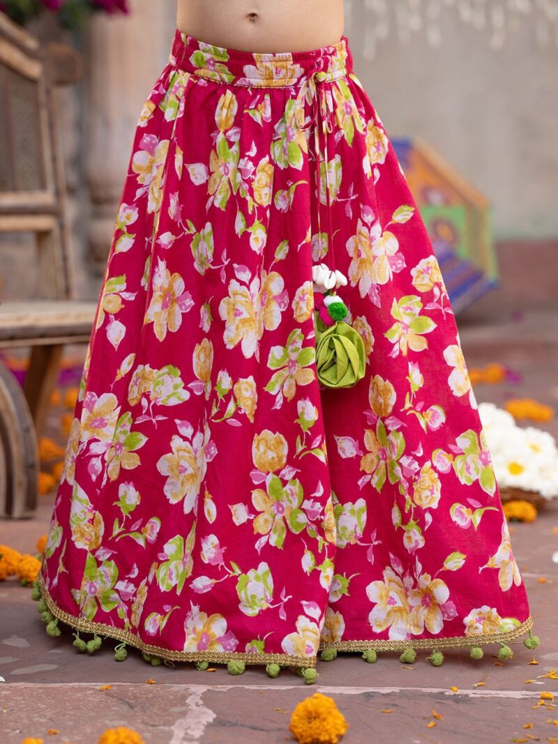Pink and green printed lehenga choli with dupatta, gotta patti