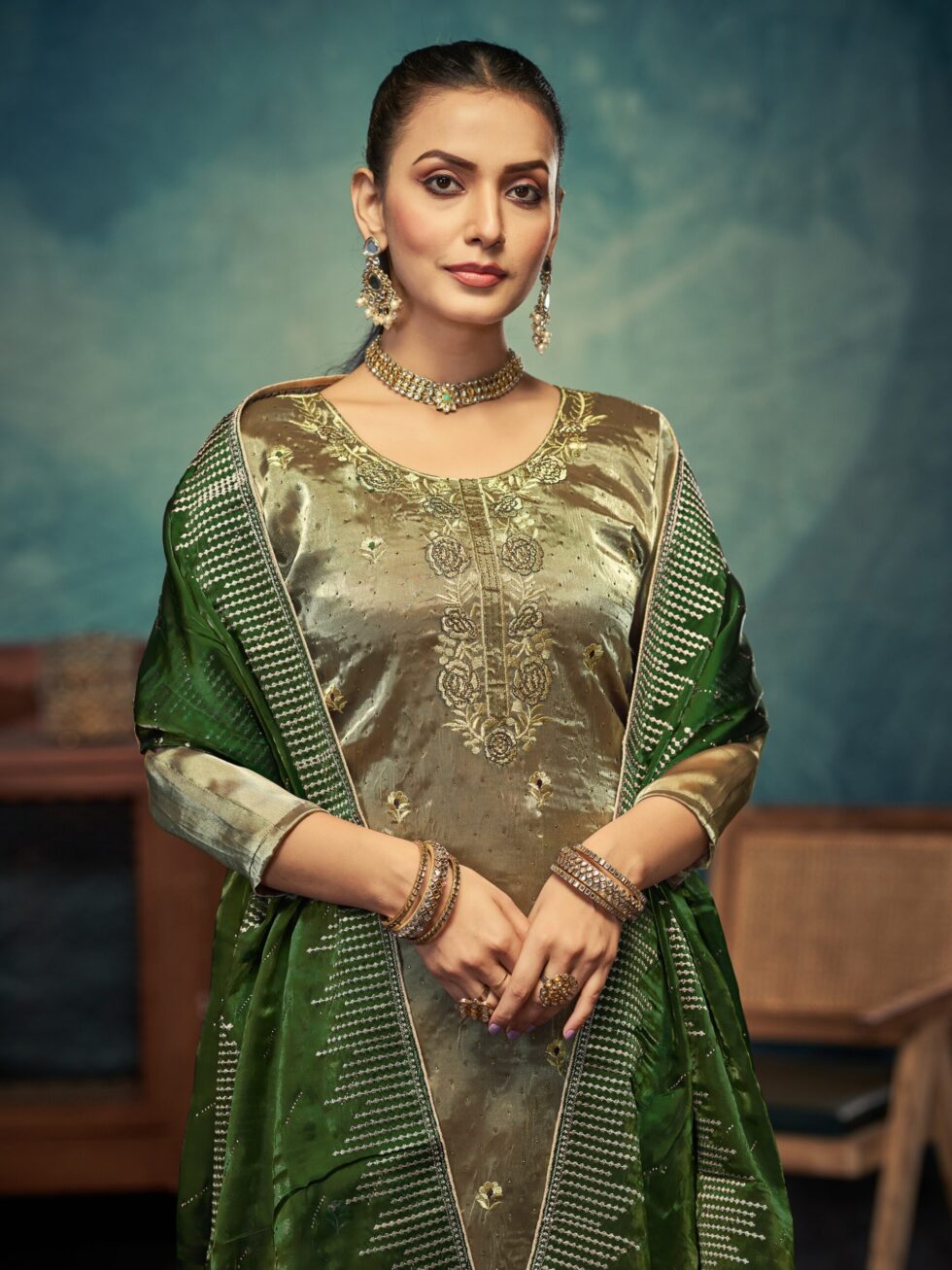 Glamorous Festival Wear Semi-Stitched Salwar Suit Collection – Green
