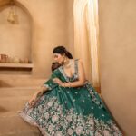 ? Lehenga:- Made of premium quality Green Color with Tissue fabric Full Flaire Semi-Stitched Lehenga with sequins and stone and Coding work has a thread Embroidery work. Has a thread cutwork border on the hemline.