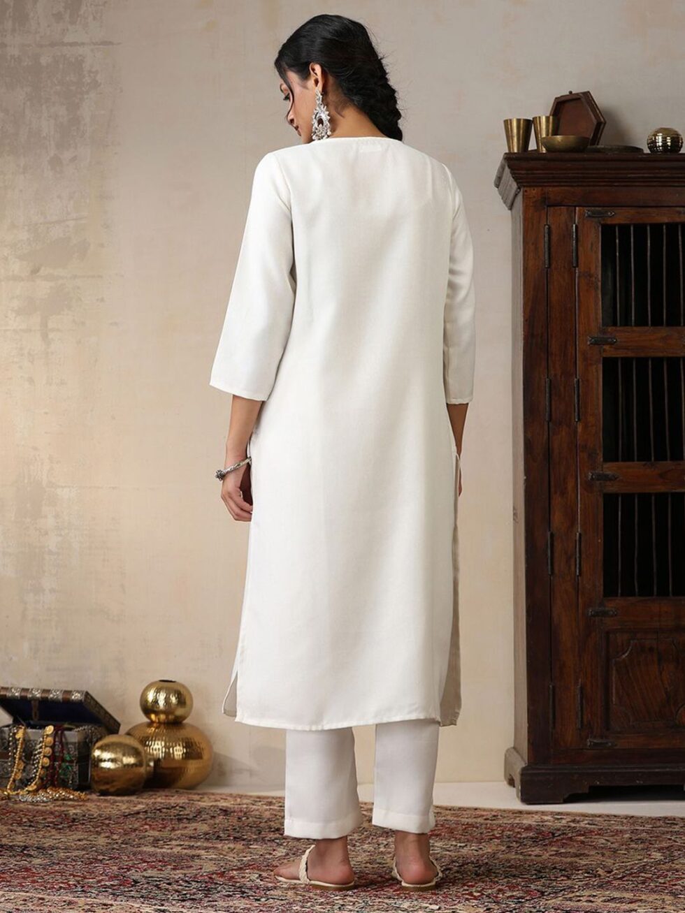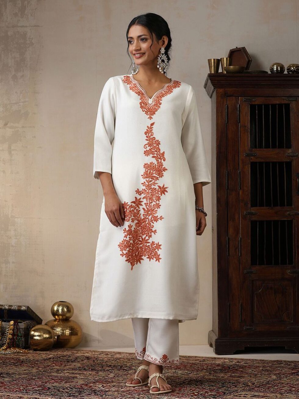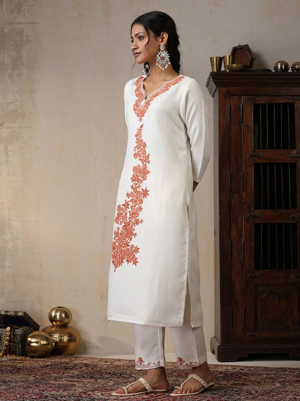 House of Chikankari Floral Embroidered Straight Kurta With Trousers