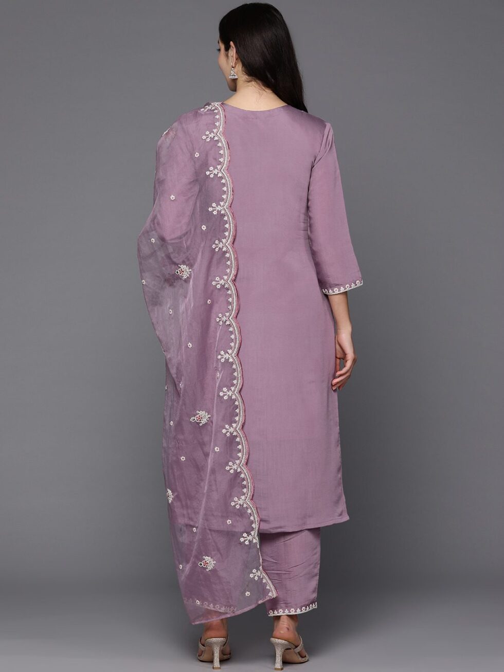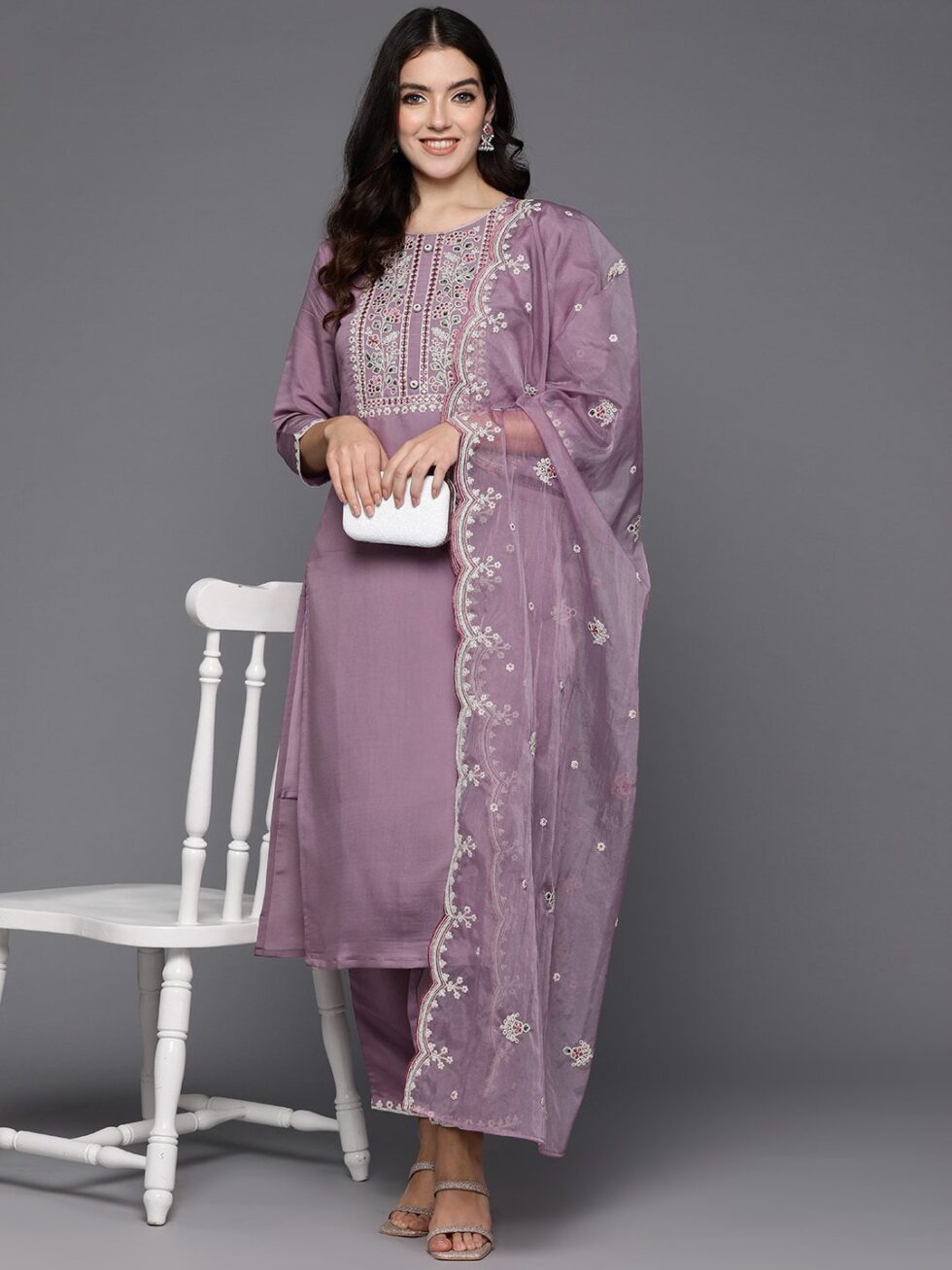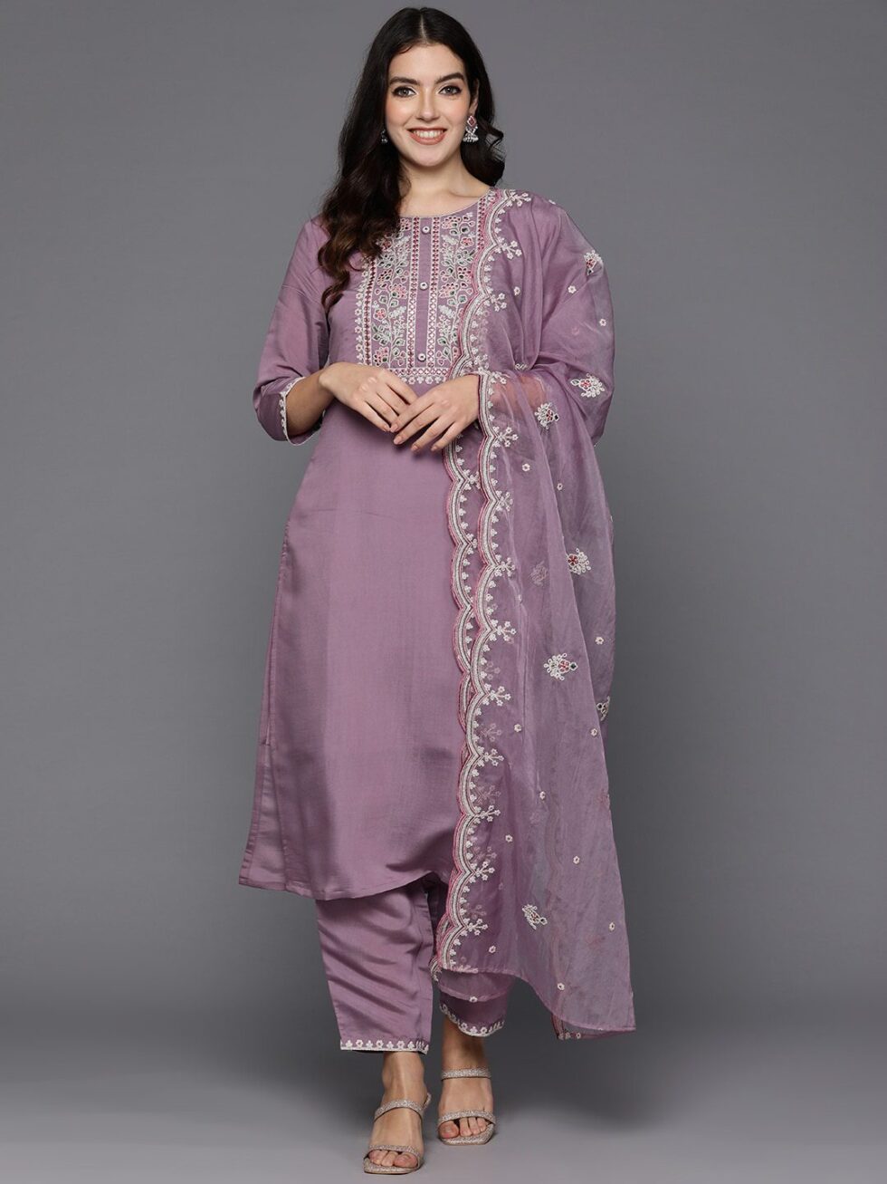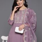 Indo Era Women Floral Yoke Design Regular Thread Work Kurta with Trousers & Dupatta
