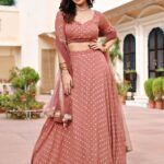 Brown and gold-toned embroidered lehenga choli with dupatta, gotta patti