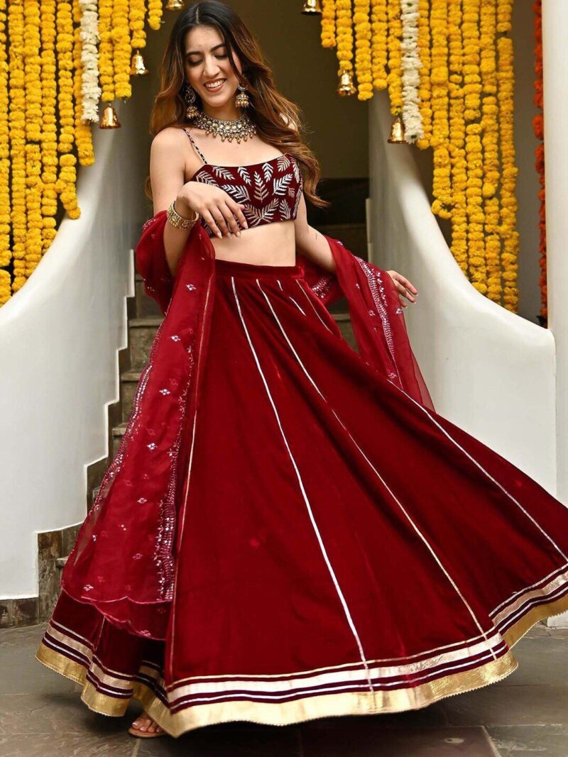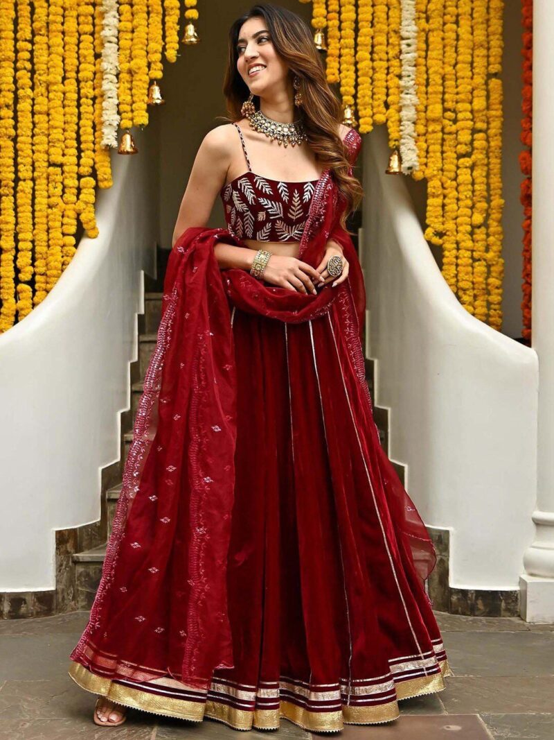 embroidered lehenga choli with dupatta,has zari design