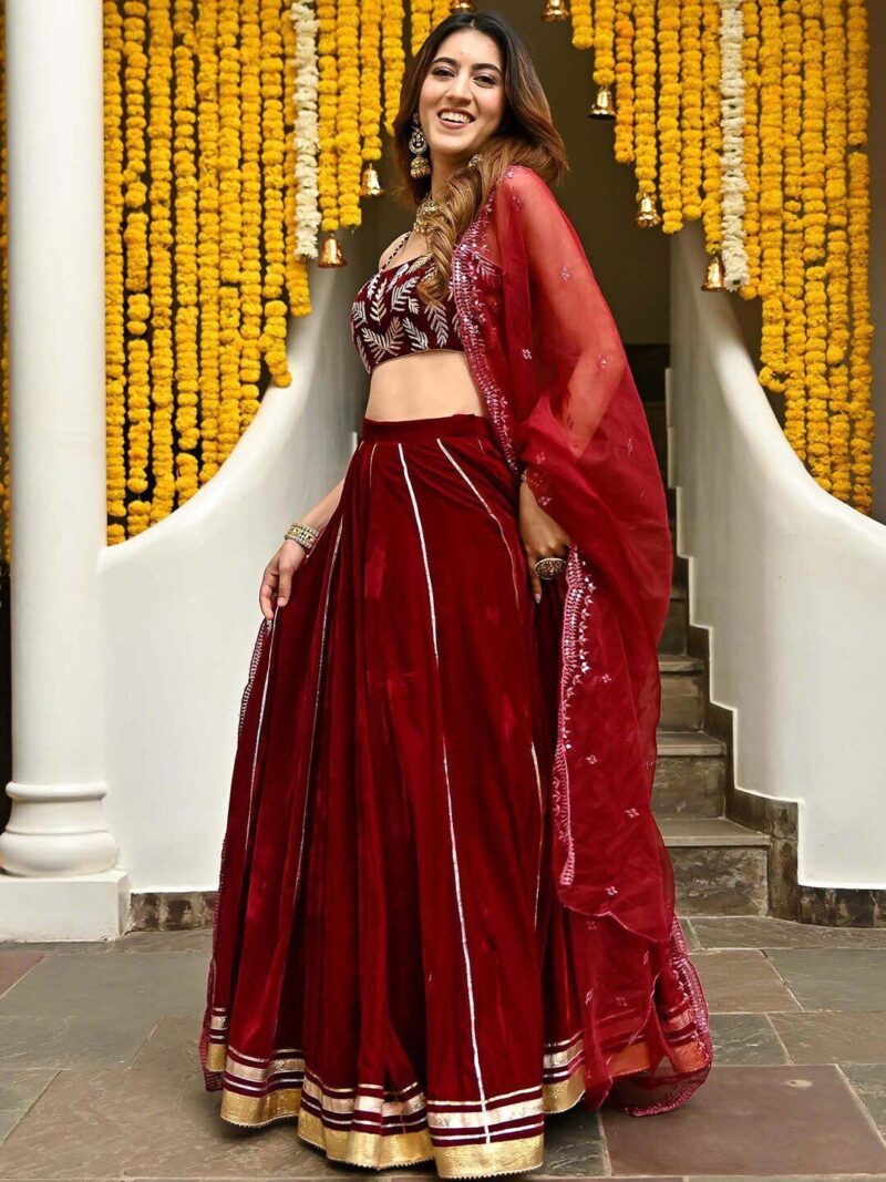 embroidered ready to wear lehenga, has zip closure, flared hem