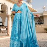embroidered lehenga choli with dupatta, thread work