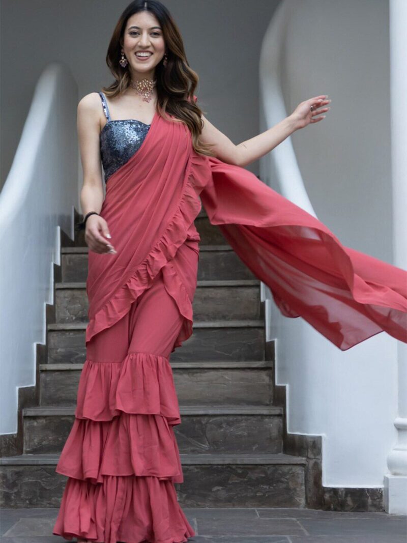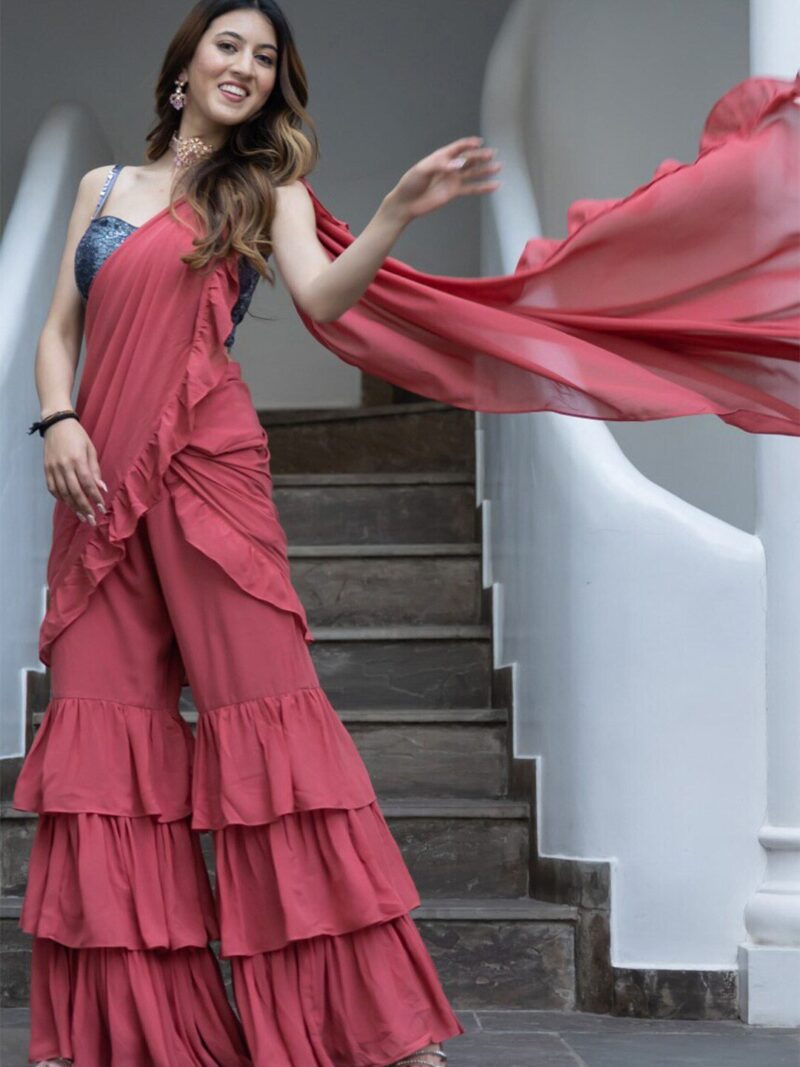 Lavanya The Label Pink & Grey Solid Palazzo Saree