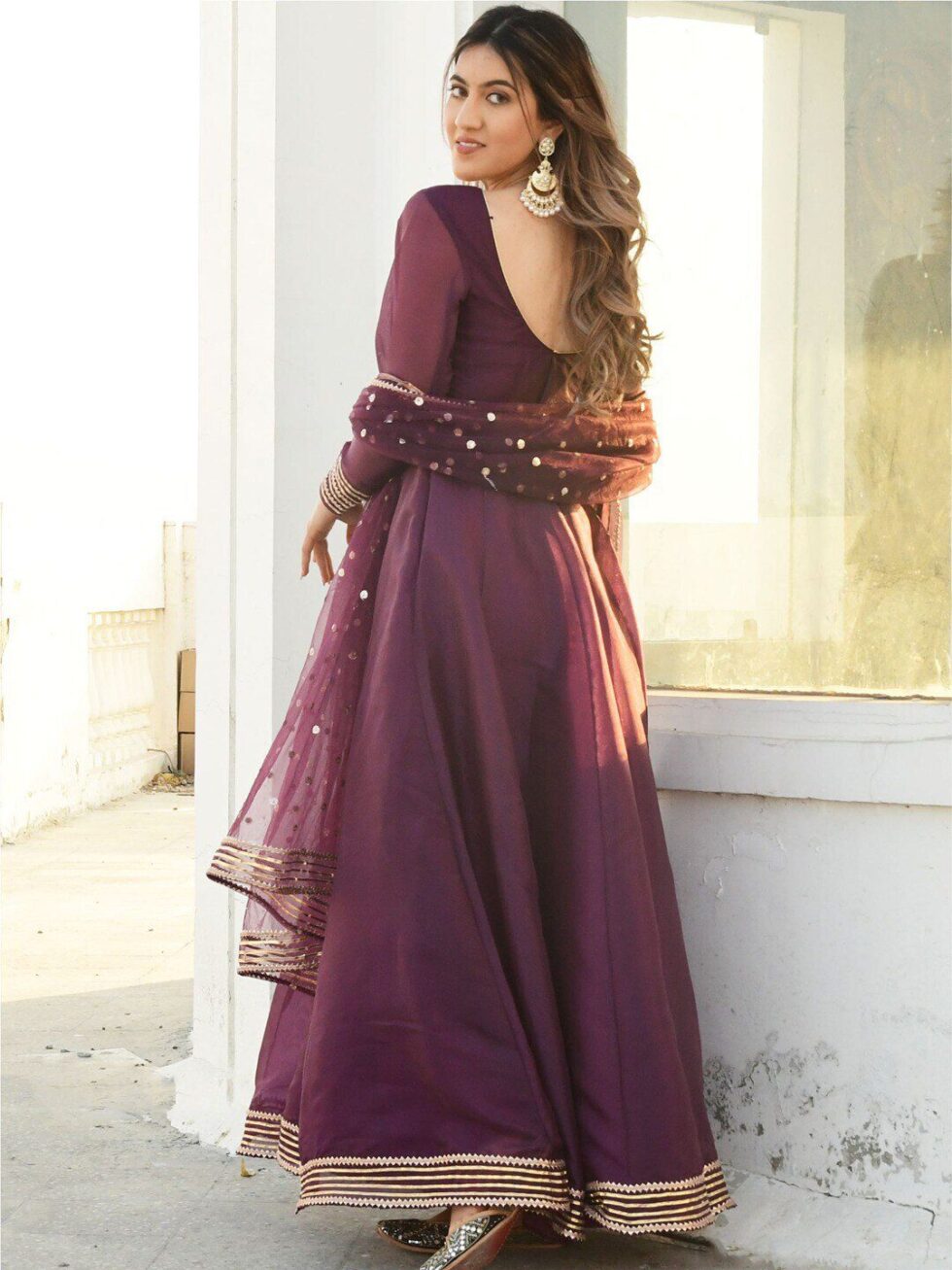 Lavanya The Label Purple & Gold-Toned Embellished Crepe Ethnic Maxi Maxi Ethnic Dress