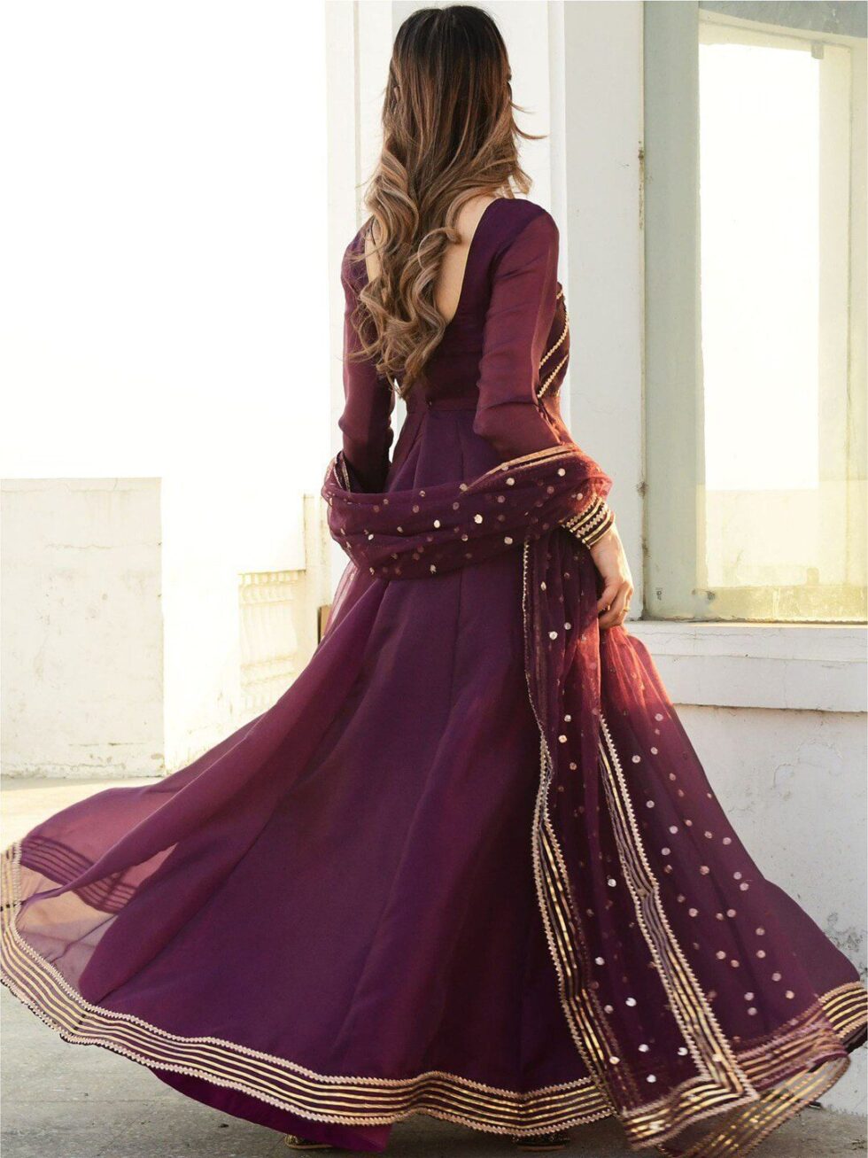 • Purple and gold-toned embellished embellished maxi Ethnic Dress