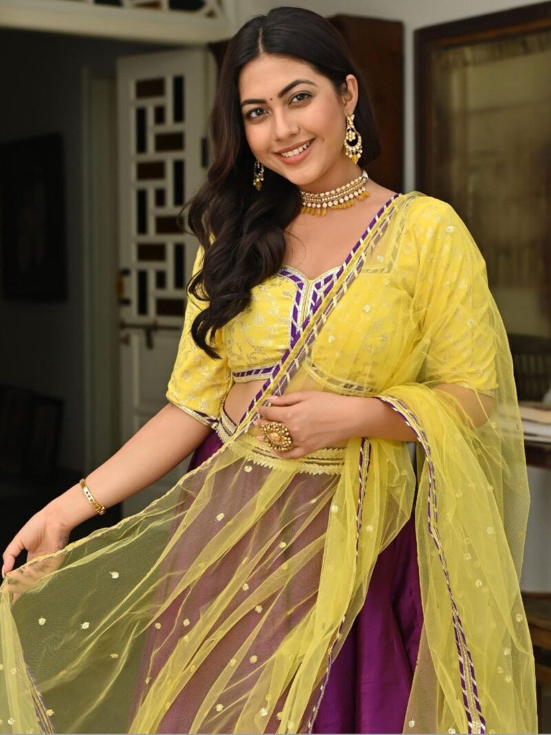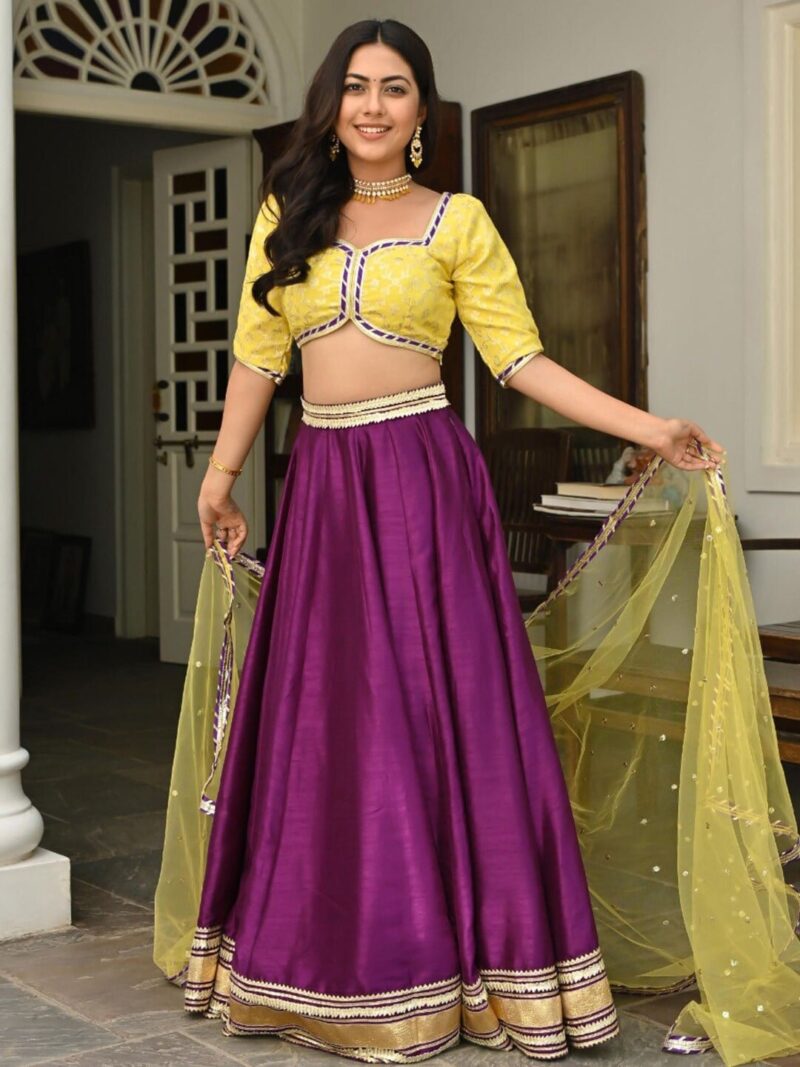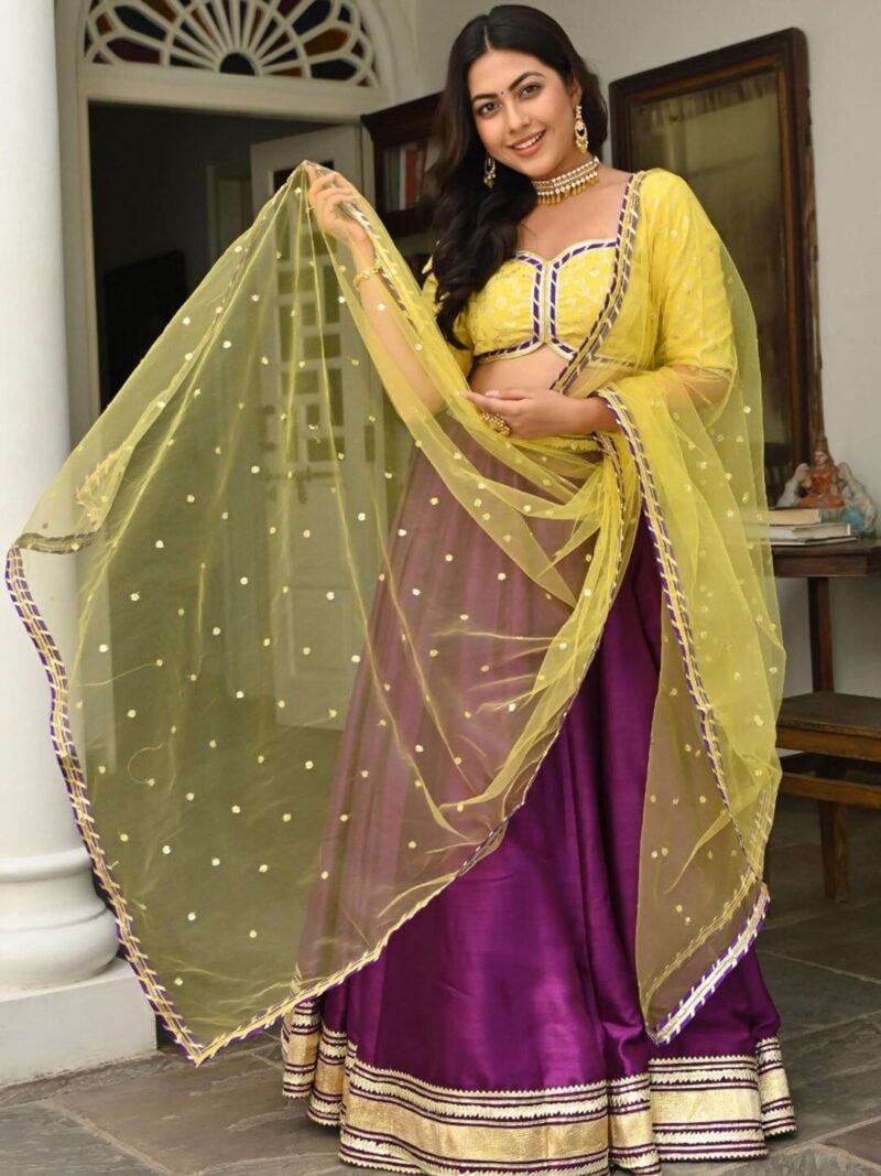Lavanya The Label Purple & Yellow Ready to Wear Lehenga & Blouse With Dupatta