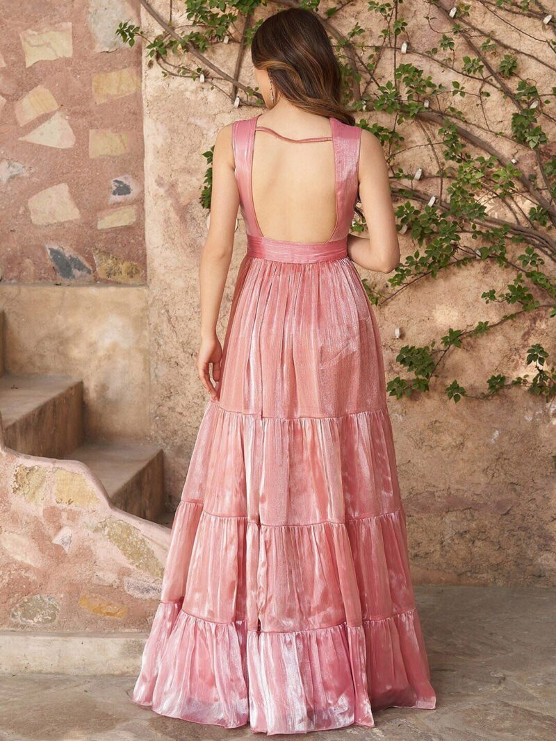 Lavanya The Label V-Neck Gathered Maxi Tired Ball Gown
