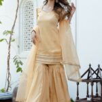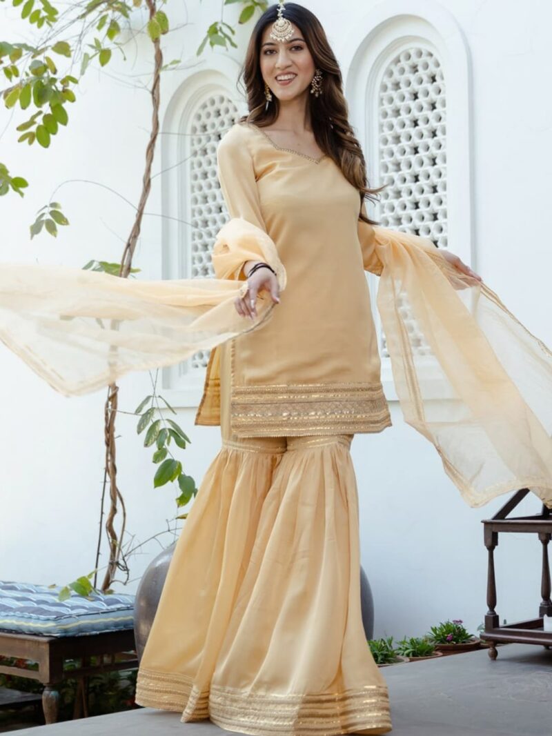 Beige yoke design Kurta with Sharara & dupatta