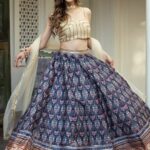 Blue and cream-coloured embellished lehenga choli with dupatta,