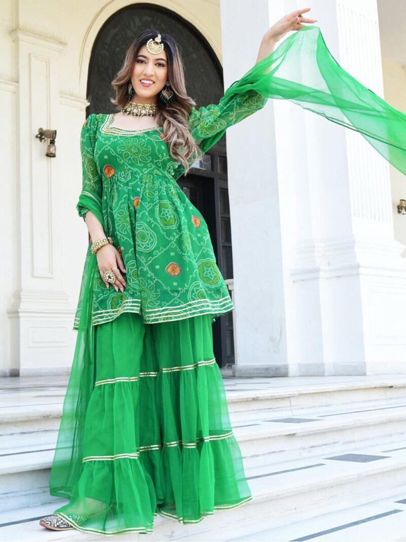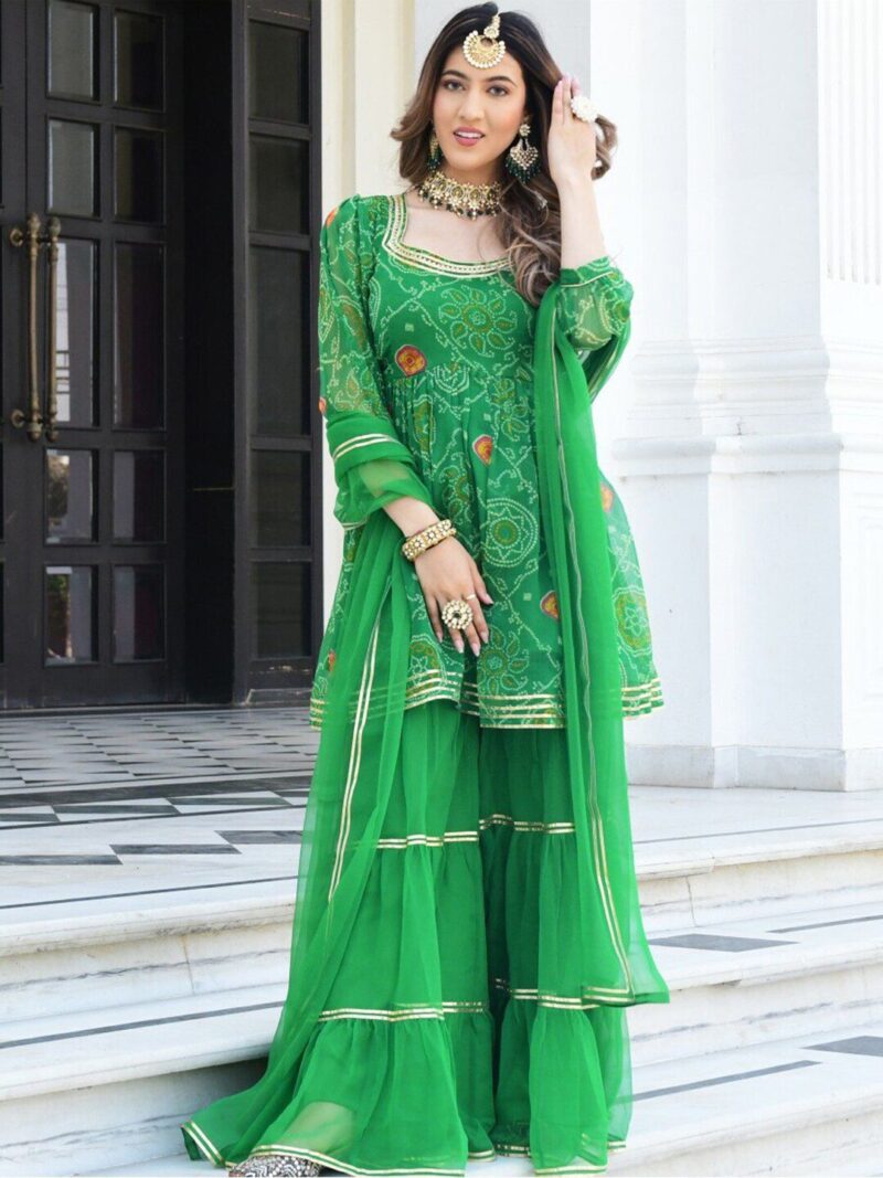 Lavanya The Label Women Green Ethnic Motifs Printed Kurta with Churidar & With Dupatta