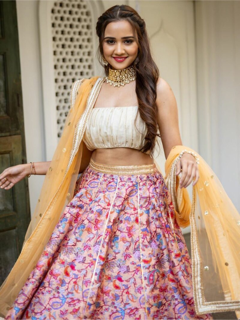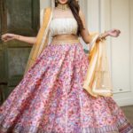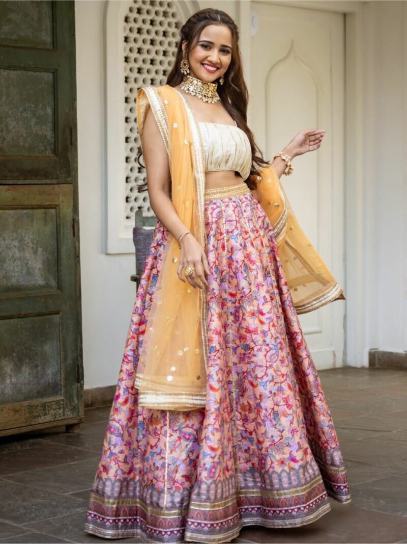 Purple and pink printed ready to wear lehenga