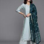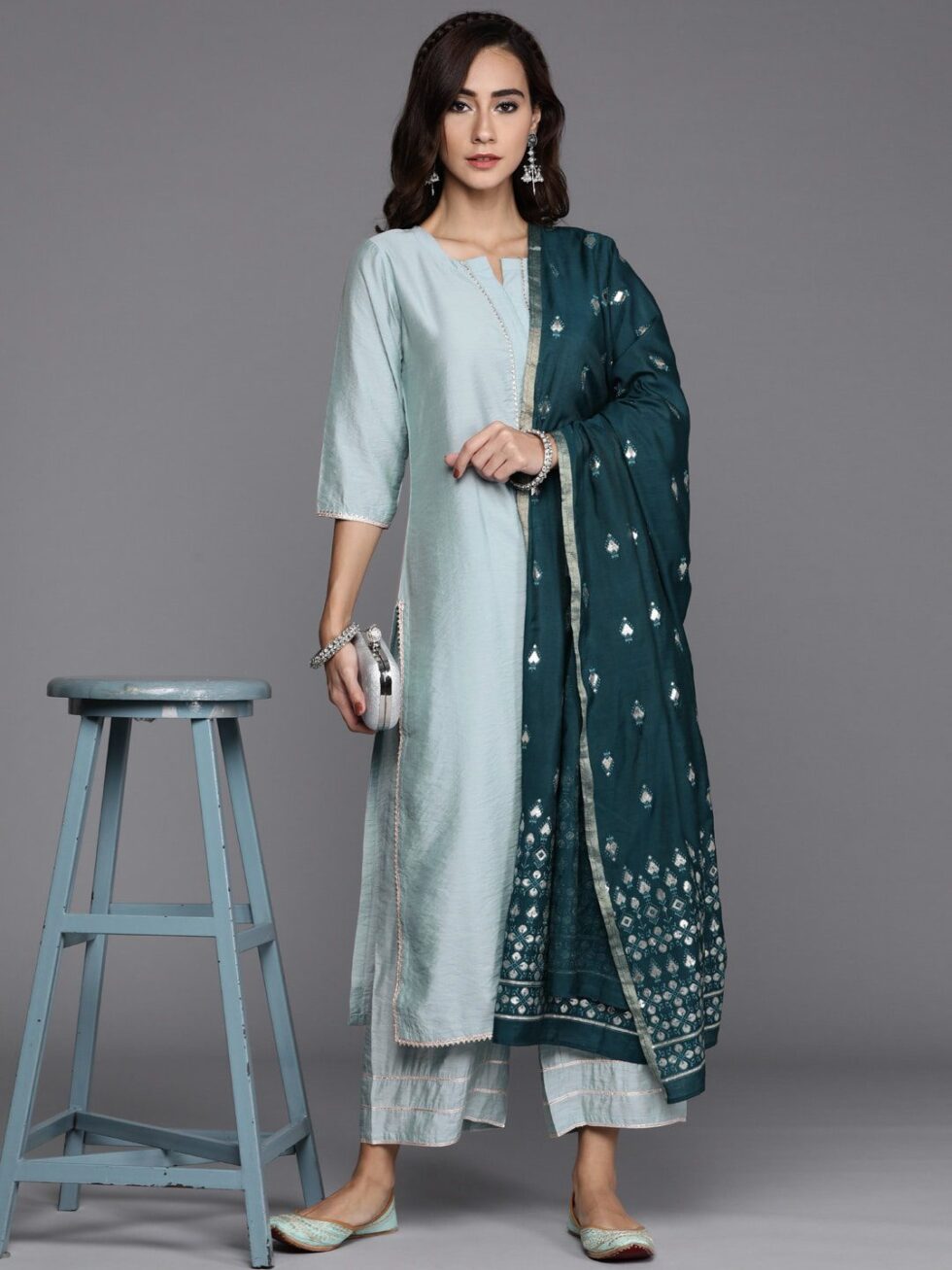 Blue with a grey tinge solid Kurta with Palazzos and dupatta