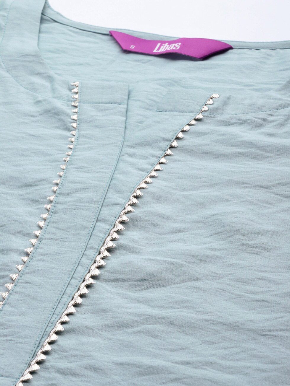 Libas Women Blue Chanderi Silk Gotta Patti Kurta with Palazzos & Dupatta