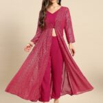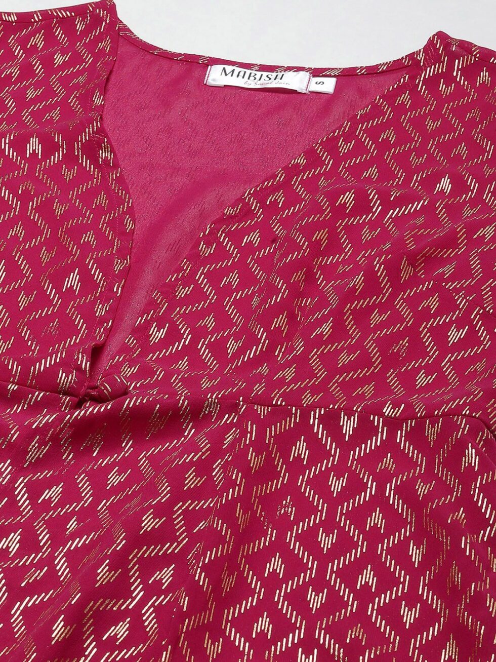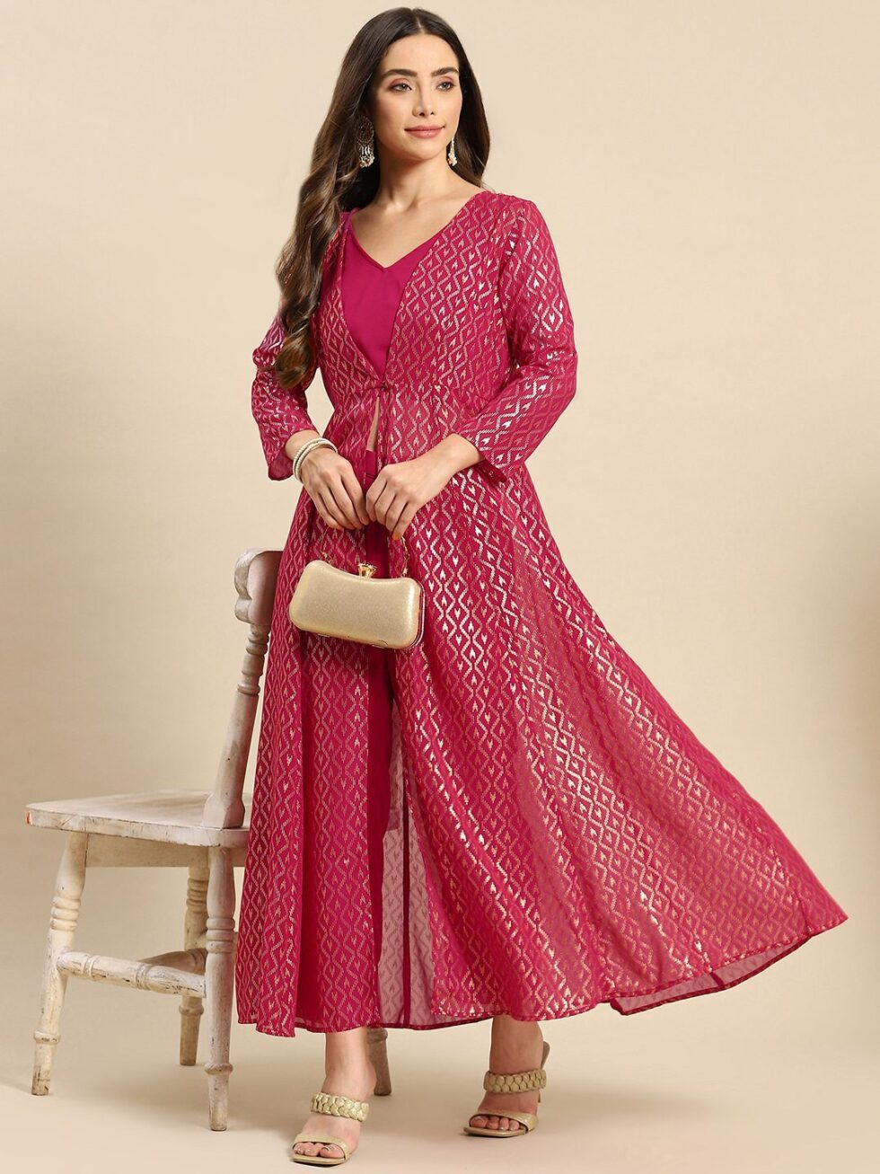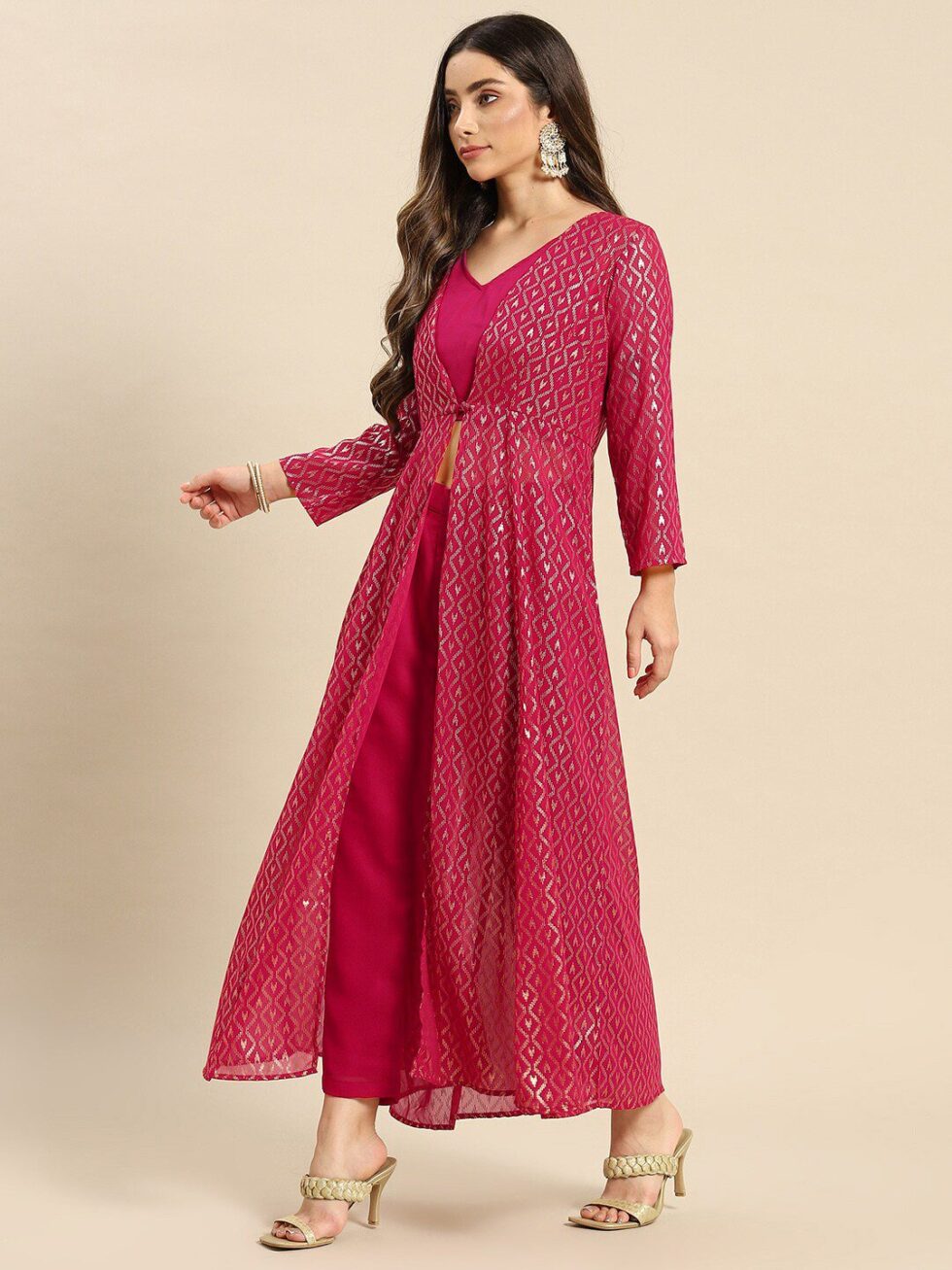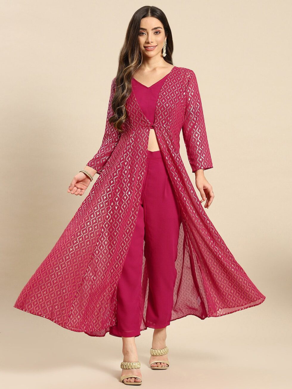 MABISH by Sonal Jain Women Magenta Ethnic Motifs Printed Layered Kurta with Trousers