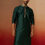 Men Bottle Green Silk Anmol Jacquard Kurta