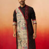 Experience royal elegance with Vastramay’s cream silk blend kurta featuring royal blue motif with jacquard ethnic design and thread with zari embroidery on collar and placket. Concealed placket with mandarin collar, premium crepe lining, knee-length with side slits and functional inseam pockets. Perfect for festive occasions, weddings, Diwali, and Navratri celebrations.