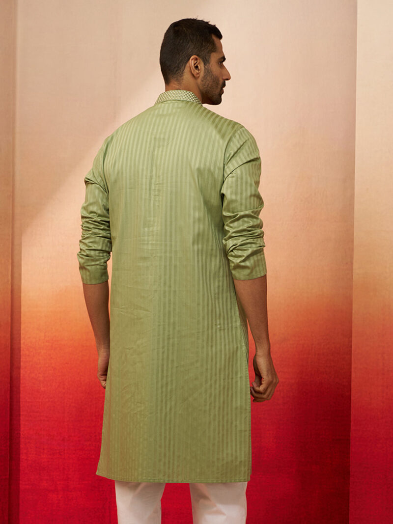Men Mint Green Cotton Monalisa Embroidered Kurta