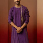 Elevate your festive style with Vastramay’s purple vertical shimmer kurta featuring exquisite hand embroidery with zari and sequin work in ethnic motifs. Round neck with V-cut design, button closure, knee-length with side slits and practical inseam pockets. Perfect for Navratri, Durga Puja, weddings, and premium traditional celebrations.