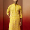 Elevate your festive style with Absolutely Desi’s purple vertical shimmer kurta featuring exquisite hand embroidery with zari and sequin work in ethnic motifs. Round neck with V-cut design, button closure, knee-length with side slits and practical inseam pockets. Perfect for Navratri, Durga Puja, weddings, and premium traditional celebrations.