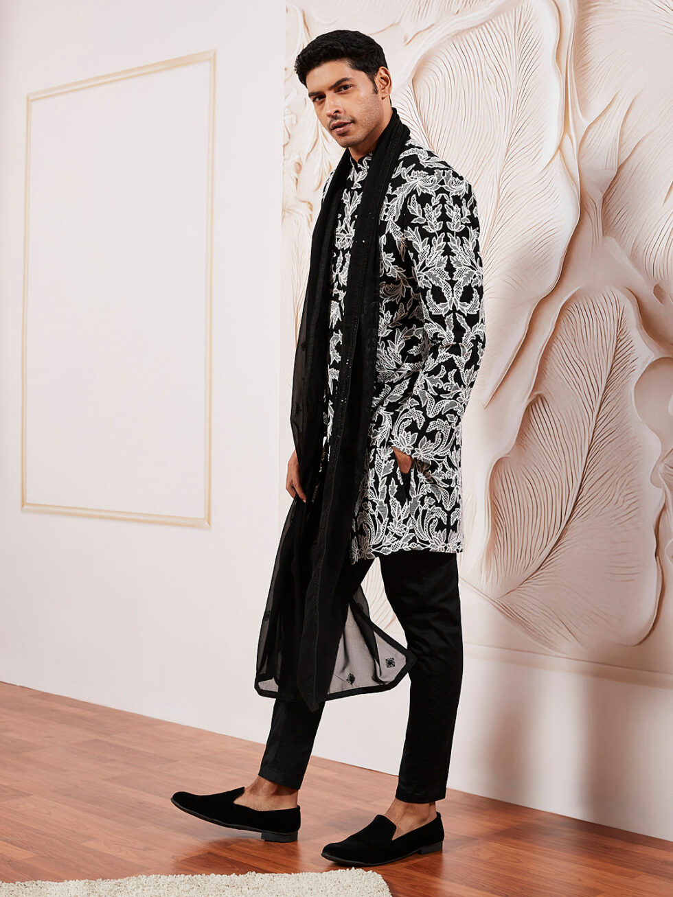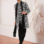 Men’s Black Fox Geogette Indo Western, Kurta, Pant And Dupatta Set