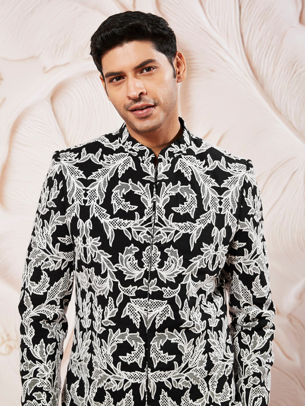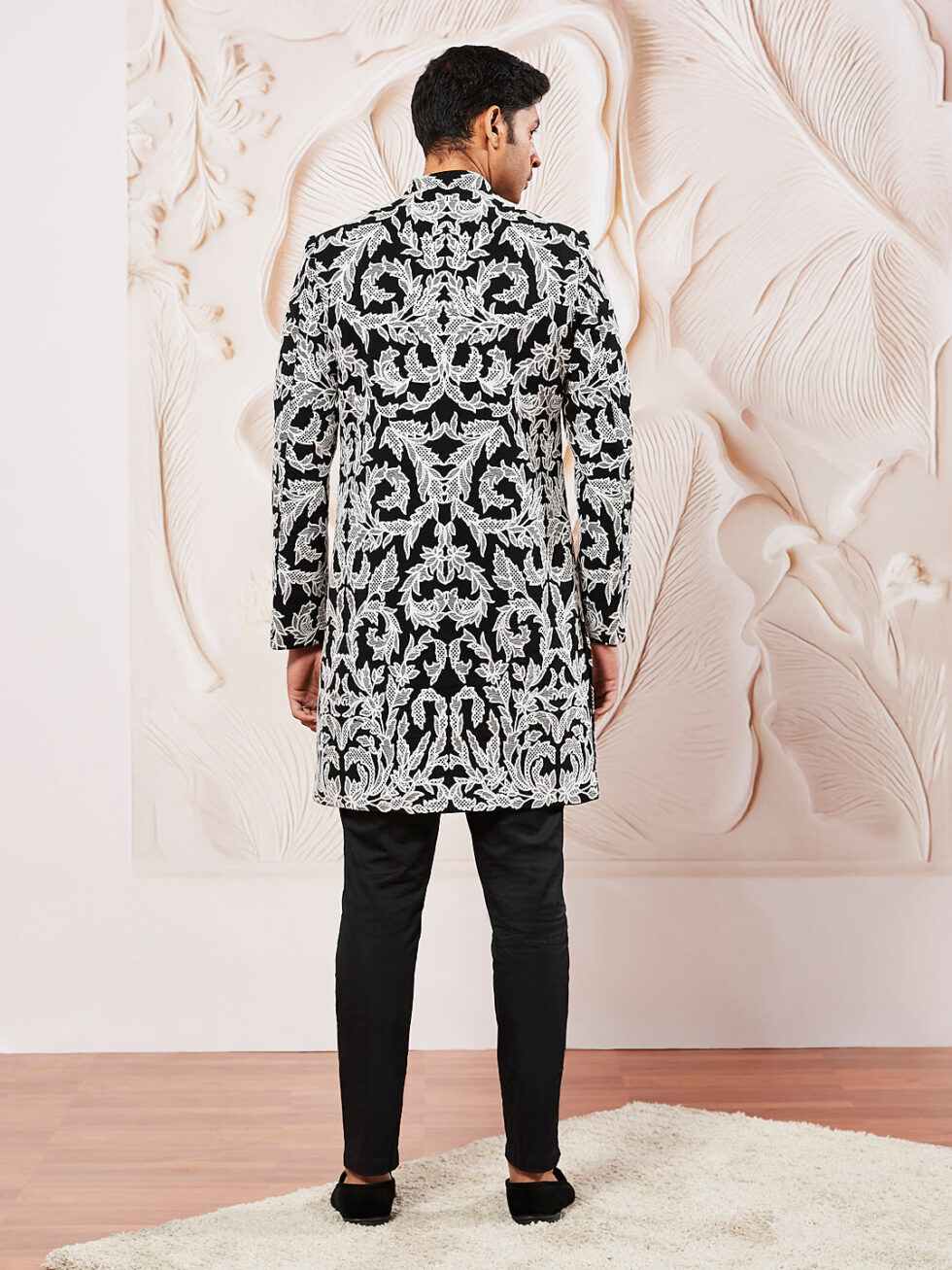 PRODUCT DETAILSThis is an Indo-western and pant set for men. The ensemble includes a coordinated allover sequined embroidered indo western with intricate designs.The pants are tailored, slim-fit, and perfectly complement the indo western. They are simple yet stylish, maintaining the outfit’s focus on the upper layers. matching dupatta with subtle embroidery along the borders adds grace and completes the ensemble, draped effortlessly for a stylish flair.